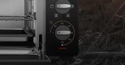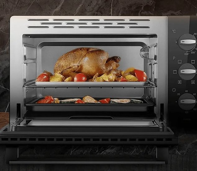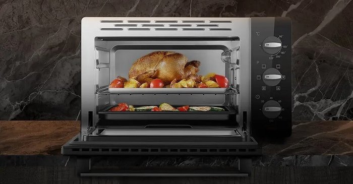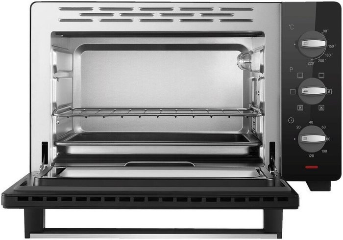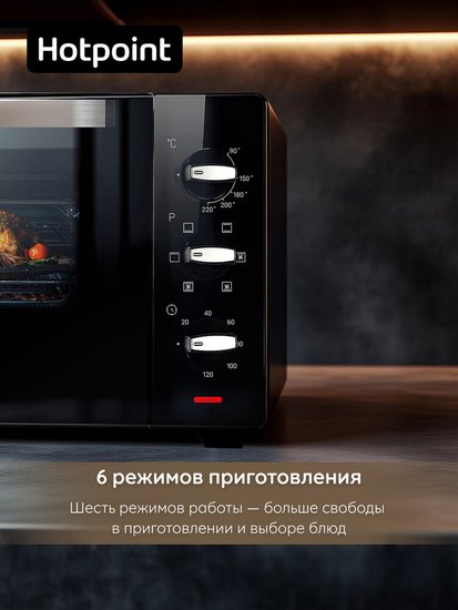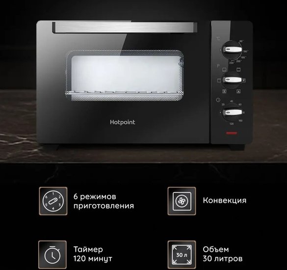 ✅Ключевые характеристикиЭлектрическая мини-печь объемом 30 л с максимальной потребляемой мощностью 1600 Вт предназначена для приготовления различных блюд в домашних условиях. Подходит тем, кто ищет компактное и функциональное решение для кухни, способное заменить классическую духовку.✅Преимущества и отличияМодель оснащена режимами верхнего, нижнего нагрева и конвекции, что позволяет равномерно пропекать продукты и добиваться профессиональных результатов выпечки и запекания. Наличие двух стекол на дверце способствует лучшей теплоизоляции и безопасности.✅ПрактичностьВнутренние стенки покрыты эмалью, что облегчает уход и чистку после готовки. В комплекте идет противень и решетка, а съемное внутреннее стекло упрощает обслуживание и поддержание чистоты устройства.✅УникальностьСреди особенностей модели выделяется функция конвекции, обеспечивающая быстрое и качественное приготовление пищи без пересушивания. Мини-печь сочетает компактные размеры с расширенными возможностями, что делает ее удобным выбором для малогабаритных кухонь.✅Ключевые характеристикиЭлектрическая мини-печь объемом 30 л с максимальной потребляемой мощностью 1600 Вт предназначена для приготовления различных блюд в домашних условиях. Подходит тем, кто ищет компактное и функциональное решение для кухни, способное заменить классическую духовку.✅Преимущества и отличияМодель оснащена режимами верхнего, нижнего нагрева и конвекции, что позволяет равномерно пропекать продукты и добиваться профессиональных результатов выпечки и запекания. Наличие двух стекол на дверце способствует лучшей теплоизоляции и безопасности.✅ПрактичностьВнутренние стенки покрыты эмалью, что облегчает уход и чистку после готовки. В комплекте идет противень и решетка, а съемное внутреннее стекло упрощает обслуживание и поддержание чистоты устройства.✅УникальностьСреди особенностей модели выделяется функция конвекции, обеспечивающая быстрое и качественное приготовление пищи без пересушивания. Мини-печь сочетает компактные размеры с расширенными возможностями, что делает ее удобным выбором для малогабаритных кухонь.