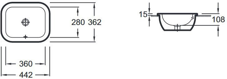 Vox EYD102-00 Встраиваемая раковина , 44 см, без заглушки перелива, белая