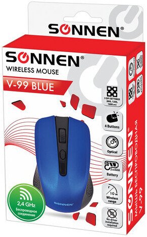 ✅ Беспроводная мышь SONNEN V99 – это удобное и компактное решение для ежедневной работы и интернет-серфинга. Благодаря своему небольшому размеру она отлично подходит для ноутбука, а эргономичная форма корпуса обеспечивает комфорт даже при длительном использовании.✅ Эта модель оснащена оптическим сенсором с возможностью изменения разрешения между 1000, 1200 и 1600 dpi, что позволяет подобрать оптимальную чувствительность для разных задач, будь то офисная работа или обработка фотографий.✅ Подключение к компьютеру осуществляется по радиоканалу с помощью USB-приемника, который обеспечивает стабильную работу на расстоянии до 10 метров. В комплекте поставляются две батарейки AAA, что гарантирует быстрое начало работы без необходимости докупать элементы питания.✅ В конструкции предусмотрены четыре кнопки, включая отдельную для смены разрешения, а колесо прокрутки с нажатием делает навигацию по документам и страницам максимально удобной. Синий цвет корпуса придает мыши стильный и современный вид.✅ Беспроводная мышь SONNEN V99 – это удобное и компактное решение для ежедневной работы и интернет-серфинга. Благодаря своему небольшому размеру она отлично подходит для ноутбука, а эргономичная форма корпуса обеспечивает комфорт даже при длительном использовании.✅ Эта модель оснащена оптическим сенсором с возможностью изменения разрешения между 1000, 1200 и 1600 dpi, что позволяет подобрать оптимальную чувствительность для разных задач, будь то офисная работа или обработка фотографий.✅ Подключение к компьютеру осуществляется по радиоканалу с помощью USB-приемника, который обеспечивает стабильную работу на расстоянии до 10 метров. В комплекте поставляются две батарейки AAA, что гарантирует быстрое начало работы без необходимости докупать элементы питания.✅ В конструкции предусмотрены четыре кнопки, включая отдельную для смены разрешения, а колесо прокрутки с нажатием делает навигацию по документам и страницам максимально удобной. Синий цвет корпуса придает мыши стильный и современный вид.