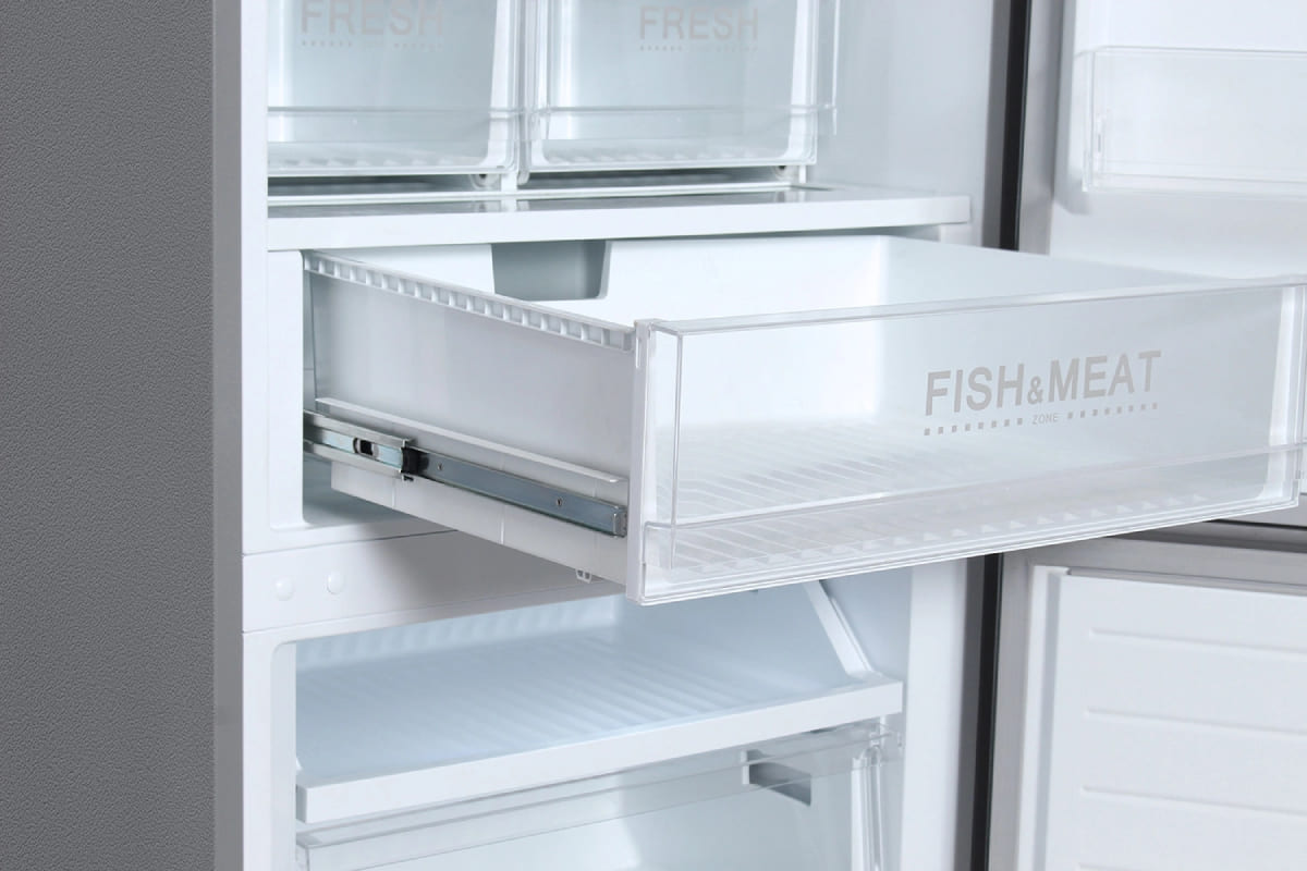 Специальная зона свежести предназначена для правильного и более длительного хранения овощей, фруктов, зелени. В ней поддерживается околонулевая температура, поэтому продукты не перемораживаются и не пересыхают. Система охлаждения этого холодильника — многопоточное охлаждение Multi-flow.