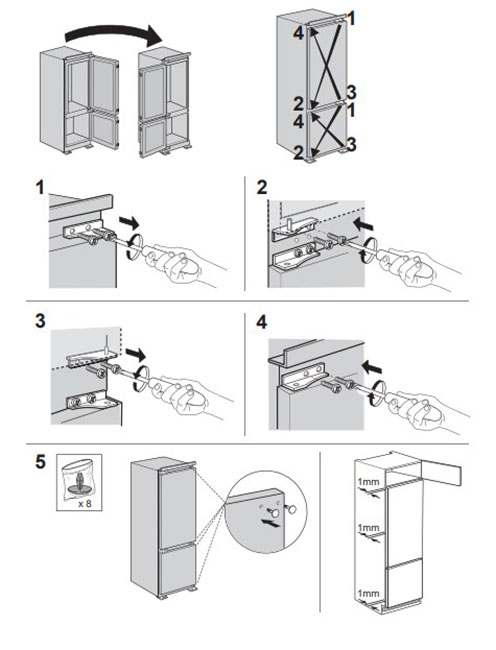 Встраиваемый прибор проще разместить в комнате, даже если общий метраж не такой уж большой. Вы можете спрятать его за декоративной панелью от мебельного фасада — советуем заранее определить нишу и заказывать панели исходя из типа крепления к двери. Способ монтажа в данной модели: скользящее крепление двери (система door sliding) Вы можете поменять направление открывания двери, так как упор переставляемый и ее можно перевесить на другую сторону. Такая функция открывает больше возможностей для установки. Холодильник с морозильником обладает всеми опциями, которые чаще всего ищут и выбирают покупатели. Стандартная конфигурация — универсальный вариант для любой квартиры. Количество камер: 2.