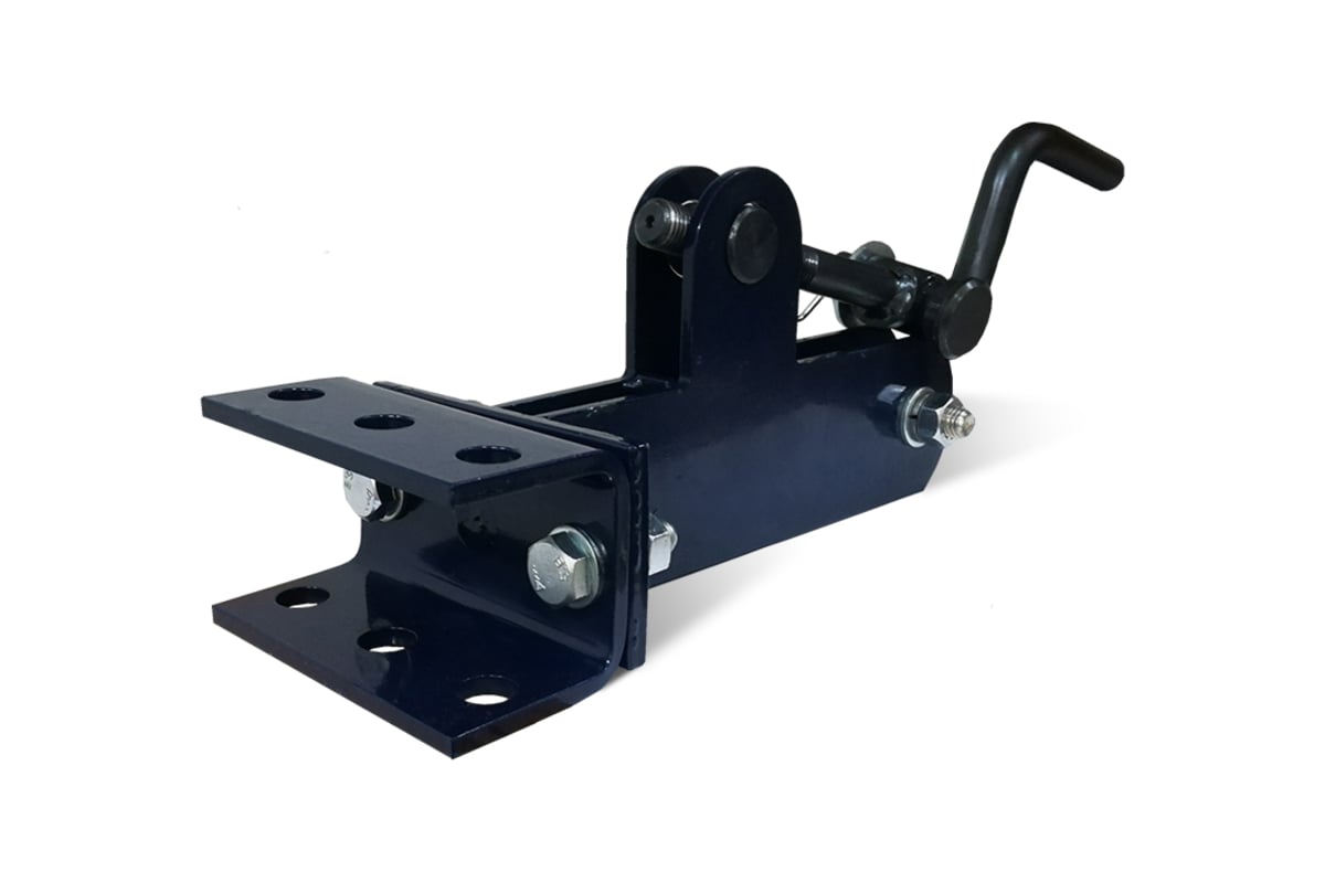 Агрегатирование производится посредством установки скобы на узел крепления мототехники и ее фиксирования с помощью двух шкворней, входящих в комплект мотоблока.