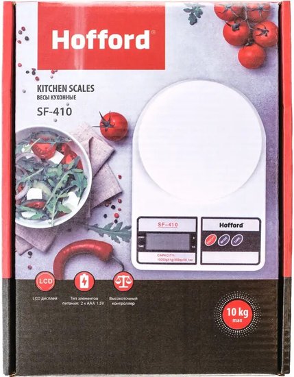 - ✅Ключевые характеристикиЭлектронные кухонные весы с максимальной нагрузкой 10 кг подойдут для взвешивания продуктов и ингредиентов на кухне. Оснащены LCD дисплеем и работают от двух батареек AAA 1.5V, что обеспечивает удобство и простоту эксплуатации.✅Преимущества и отличияТочность измерения с погрешностью около ±3 граммов позволяет точно определять массу даже небольших порций. Функция обнуления тары делает процесс взвешивания более комфортным, а компактные размеры позволяют разместить прибор на любой кухне.✅ПрактичностьПлатформа рассчитана на объекты небольшого и среднего размера, а для взвешивания крупногабаритных продуктов рекомендуется использовать дополнительную жесткую подставку. Весы подходят для ежедневного использования и легко очищаются благодаря пластиковому корпусу.✅УникальностьЛегкий и компактный корпус делает весы удобными для хранения и переноски, а простота управления позволяет быстро приступить к работе без сложных настроек. Выгодная цена делает этот прибор отличным выбором для бытовых нужд. ✅Ключевые характеристикиЭлектронные кухонные весы с максимальной нагрузкой 10 кг подойдут для взвешивания продуктов и ингредиентов на кухне. Оснащены LCD дисплеем и работают от двух батареек AAA 1.5V, что обеспечивает удобство и простоту эксплуатации.✅Преимущества и отличияТочность измерения с погрешностью около ±3 граммов позволяет точно определять массу даже небольших порций. Функция обнуления тары делает процесс взвешивания более комфортным, а компактные размеры позволяют разместить прибор на любой кухне.✅ПрактичностьПлатформа рассчитана на объекты небольшого и среднего размера, а для взвешивания крупногабаритных продуктов рекомендуется использовать дополнительную жесткую подставку. Весы подходят для ежедневного использования и легко очищаются благодаря пластиковому корпусу.✅УникальностьЛегкий и компактный корпус делает весы удобными для хранения и переноски, а простота управления позволяет быстро приступить к работе без сложных настроек. Выгодная цена делает этот прибор отличным выбором для бытовых нужд.