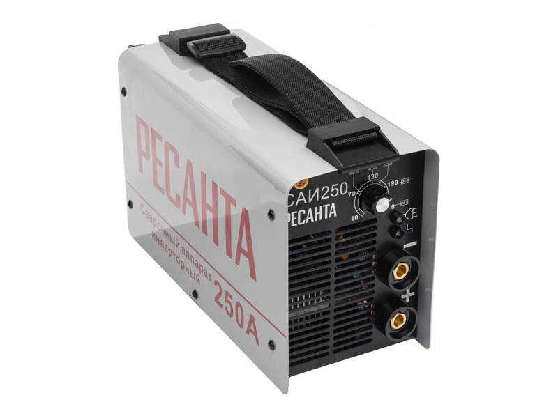 Сварочный аппарат питается от однофазной сети 140-260 В, 50 Гц. Потребляемая мощность модели Ресанта САИ-250 составляет 9,5 кВА. Сила эффективного потребляемого тока – 38.4А. Сварочный ток можно регулировать в пределах 10-250 А. Диаметр электрода – до 6мм. В сварочнике Ресанта САИ-250 реализованы функции Antistick, ARC FORCE и HOT START – уменьшение силы тока при прилипании электрода, форсаж дуги и увеличение тока на старте. Всё это в совокупности значительно облегчает сварочные работы. Агрегат может эксплуатироваться в сухом, затенённом от солнца месте при температуре окружающей среды от -20 до +50°С и влажности воздуха до 80%. Габариты сварочного аппарата 31х13.2х20 см. Вес – 4.9 кг.