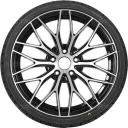 В центре асимметричного ненаправленного протектора — три продольных ребра с разным дизайном. Среднее состоит из крупных вытянутых блоков. Справа от него — сплошное ребро с многочисленными сцепными кромками, слева — с канавками в виде лепестков. Такая комбинация позволяет развивать высокую скорость при хорошей курсовой стабильности и экономит топливо благодаря низкому сопротивлению качению.
