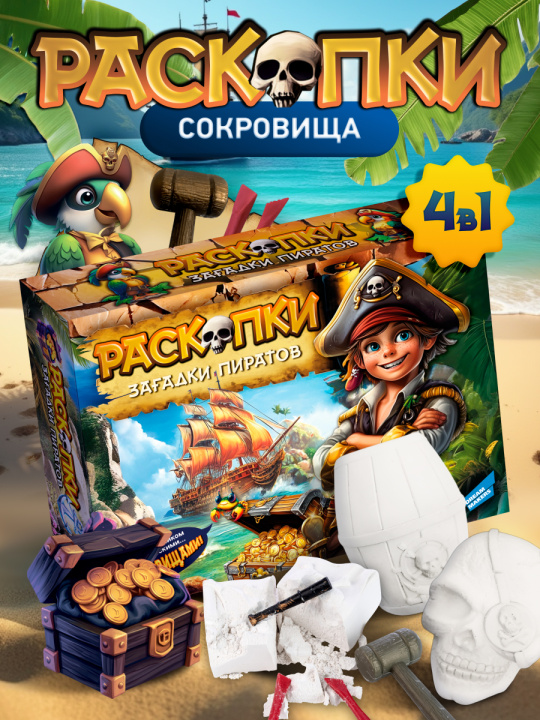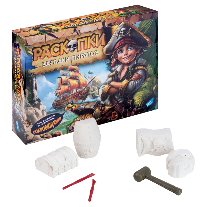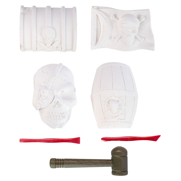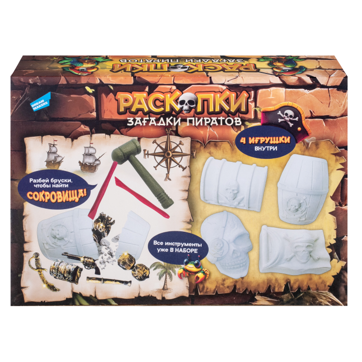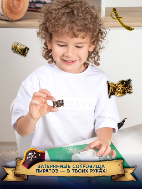 Стань настоящим археологом и найди спрятанные пиратские сокровища! В наборе 4 гипсовых бруска, внутри каждого из которых спрятана тематическая фигурка. Используй специальные инструменты, чтобы аккуратно провести раскопки. Набор развивает внимание, воображение и моторику, погружая в мир захватывающих приключений.