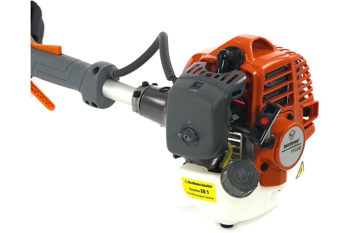Данный высоторез произведен в Китае с использованием передовых технологий и материалов высокого качества, гарантирующих его долговечность и надежность. С ним вы можете быть уверены, что оборудование будет служить вам долгие годы без каких-либо проблем. Бензиновый двигатель высотореза имеет объем 25.4 см3 и работает по принципу двухтактного двигателя, что обеспечивает ему высокую мощность и эффективность. Производитель двигателя - известная компания Zenoah, что гарантирует его качество и надежность. Мощность двигателя составляет 1.2 лошадиных сил, благодаря чему эта модель способна легко справиться с самыми тяжелыми задачами. Высоторез бензиновый Holzfforma FP226B Pro оснащен карбюратором Walbro.