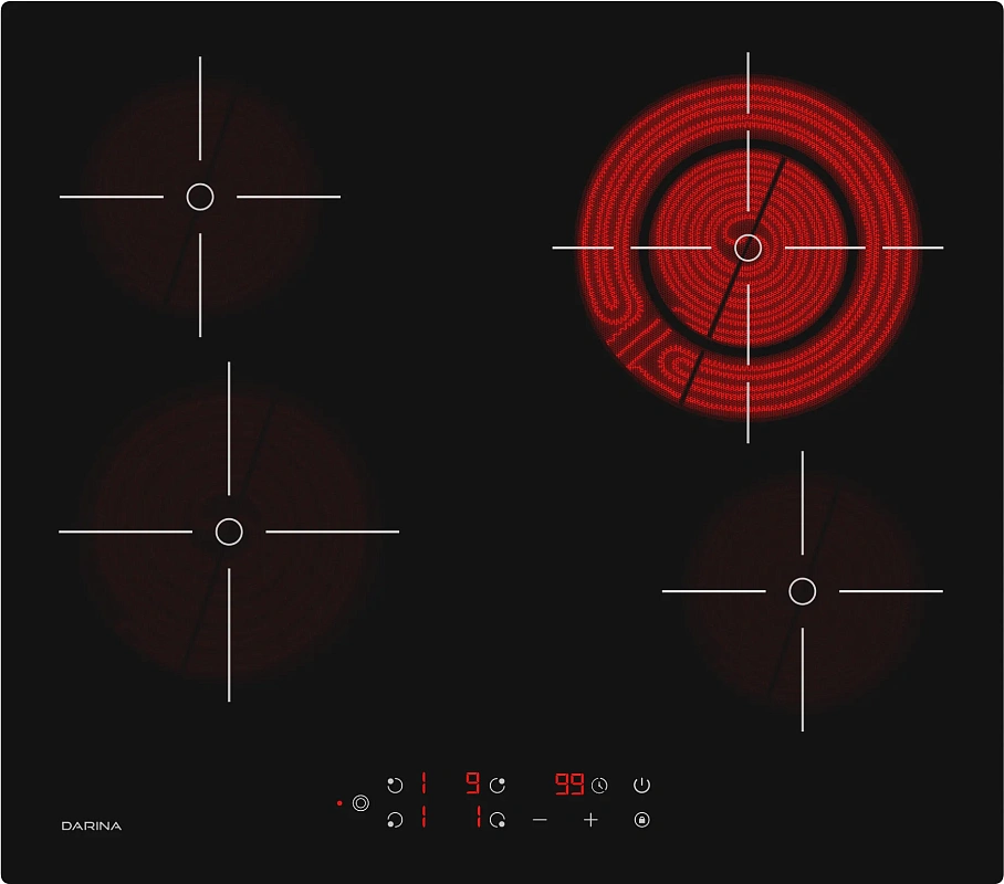 • Тип электроконфорки Пирокерамическая с пластинными нагревателями