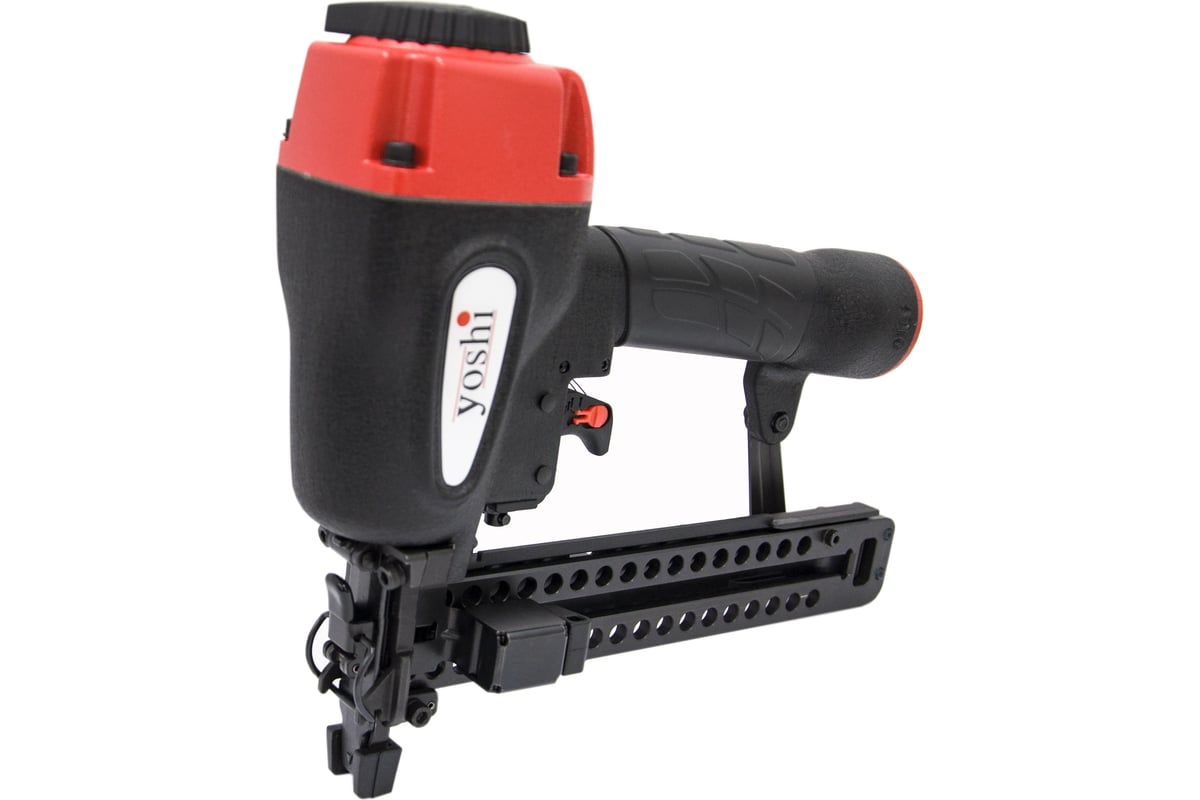 Yoshi S9240H — это надёжный и компактный пневматический степлер, разработанный для эффективного крепления листовых материалов в мебельной, строительной и отделочной сферах. Инструмент оптимален для работы с фанерой, оргалитом, ДВП и другими плитными материалами, обеспечивая прочное и аккуратное соединение. Предохранитель предотвращает случайные выстрелы, а регулировка глубины забивания позволяет точно подстроиться под плотность и толщину материала. Сферы применения: Мебельное производство: Используется для обшивки каркасов фанерой и ДВП, ремонта мебели и крепления задних стенок. Строительство: Применяется при монтаже временных перегородок, обрешётки и креплении листов к деревянным основам. Ремонт и отделка: Идеален для крепежа оргалита, декоративных панелей и плитных материалов при выполнении внутренней отделки. Бренд "Yoshi" входит в комплекс пневматических решений компании "ForEst" и отвечает за разработку и поставку пневматических инструментов и компрессорного оборудования. Тесное сотрудничество с "ForEst" позволяет оптимизировать инструменты для работы как с отечественной, так и с импортной крепёжной продукцией, обеспечивая высокую скорость, точность и надёжность. Инструменты Yoshi отличаются продуманным дизайном, эргономичностью и долговечностью, что делает их востребованными как на крупных производствах, так и для личного использования при выполнении бытовых задач и позволяет создавать комплексные пневматические решения. Регулировка глубины забивания: подходит для работы с различными материалами Точная регулировка глубины забивания: Обеспечивает аккуратную фиксацию скобы с учётом плотности материала Точная регулировка глубины забивания: Обеспечивает аккуратную фиксацию с учётом плотности материала Повышенная безопасность: Наличие предохранителя исключает случайные срабатывания Малый вес и компактность: Упрощают работу в труднодоступных местах и снижают утомляемость оператора Инструкция по эксплуатации Схема инструмента Ключи шестигранные Масленка