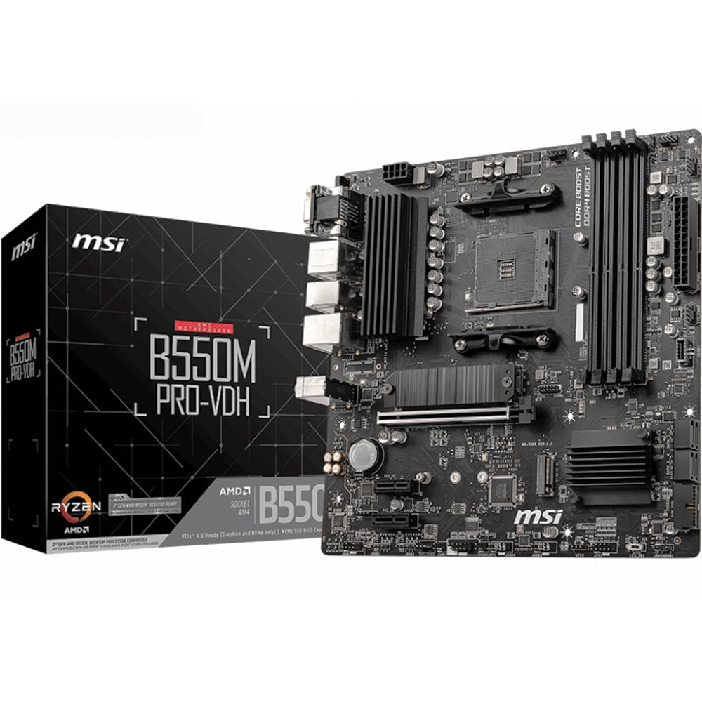 Материнская плата MSI Bad Pack B550M PRO-VDH B550, AM4, 4*DDR4, 1*PCIEx16, 2*PCIEx1, 2*M.2, 1*TypeC, , 6*USB3.2Gen1, 6*USB2.0, 4*SATA3.0, 1G, VGA, DP, HDMI, M-ATX, RTL