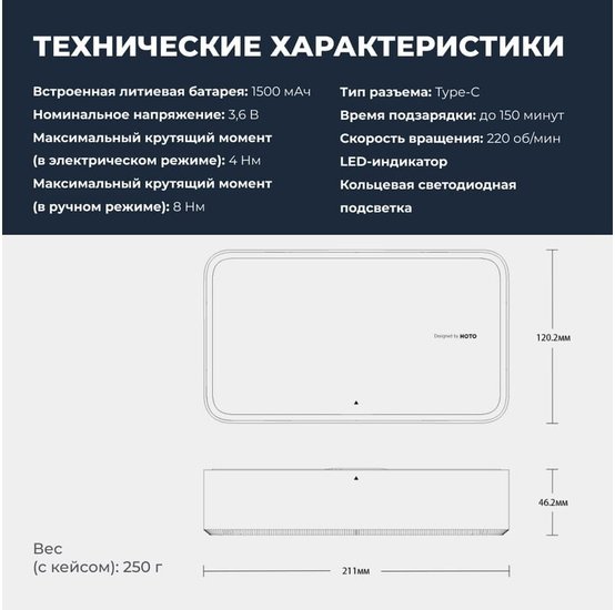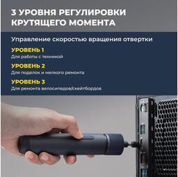 ✅Ключевые характеристикиЭлектроотвертка предназначена для быстрого и удобного завинчивания и отвинчивания крепежа при бытовых и мелких ремонтных работах. Встроенный Li-ion аккумулятор на 3.6 В обеспечивает автономную работу, а максимальный крутящий момент достигает 8 Н·м, что оптимально для работы с мебелью, техникой и мелким крепежом.✅Преимущества и отличияМодель оснащена бесщеточным двигателем, что увеличивает ресурс инструмента и снижает уровень шума. В комплект входит 25 бит различных профилей и удлинитель, что позволяет выбрать оптимальную насадку для большинства стандартных задач. Подсветка рабочей зоны облегчает работу в плохо освещённых местах.✅ПрактичностьИнструмент имеет встроенный аккумулятор и заряжается менее чем за 150 минут, что удобно для регулярного использования дома или в гараже. Прямая форма корпуса и небольшой вес обеспечивают комфортную работу даже при длительном использовании, а наличие реверса расширяет функционал.✅УникальностьБлагодаря бесщеточному типу двигателя и качественной сборке обеспечивается высокая надежность и долговечность. Температурный диапазон эксплуатации от -10°C до 50°C позволяет использовать инструмент в различных условиях, а современная система защиты аккумулятора гарантирует стабильную работу.✅Ключевые характеристикиЭлектроотвертка предназначена для быстрого и удобного завинчивания и отвинчивания крепежа при бытовых и мелких ремонтных работах. Встроенный Li-ion аккумулятор на 3.6 В обеспечивает автономную работу, а максимальный крутящий момент достигает 8 Н·м, что оптимально для работы с мебелью, техникой и мелким крепежом.✅Преимущества и отличияМодель оснащена бесщеточным двигателем, что увеличивает ресурс инструмента и снижает уровень шума. В комплект входит 25 бит различных профилей и удлинитель, что позволяет выбрать оптимальную насадку для большинства стандартных задач. Подсветка рабочей зоны облегчает работу в плохо освещённых местах.✅ПрактичностьИнструмент имеет встроенный аккумулятор и заряжается менее чем за 150 минут, что удобно для регулярного использования дома или в гараже. Прямая форма корпуса и небольшой вес обеспечивают комфортную работу даже при длительном использовании, а наличие реверса расширяет функционал.✅УникальностьБлагодаря бесщеточному типу двигателя и качественной сборке обеспечивается высокая надежность и долговечность. Температурный диапазон эксплуатации от -10°C до 50°C позволяет использовать инструмент в различных условиях, а современная система защиты аккумулятора гарантирует стабильную работу.