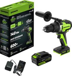 ✅Ключевые характеристикиАккумуляторная ударная дрель-шуруповерт предназначена для выполнения широкого спектра задач в мастерской и на строительной площадке. Модель оснащена бесщеточным двигателем, максимальным крутящим моментом 140 Н·м и быстрозажимным патроном с диапазоном зажима 2 - 13 мм. Работает на аккумуляторе 24 В емкостью 4 А·ч, позволяя легко закручивать более 600 саморезов на одном заряде.✅Преимущества и отличияВстроенная интеллектуальная система защиты от отдачи Anti-kickback обеспечивает безопасность в случае заклинивания оснастки. Двухскоростной планетарный редуктор с металлическим корпусом гарантирует долгий срок службы и высокую производительность. Яркая LED-подсветка облегчает работу в условиях недостаточного освещения.✅ПрактичностьНастройки моментной муфты с 23+2 ступенями позволяют точно подобрать усилие для работы с разными материалами и крепежом. Переставляемая боковая рукоятка и поясная клипса делают инструмент удобным для переноски и работы на высоте. Индикация заряда аккумулятора помогает контролировать запас энергии.✅УникальностьИспользование бесщеточного двигателя DigiPro с цифровым управлением и инновационной системой Intelligent Power выделяет эту модель среди аналогов. Инструмент сочетает в себе надежность, высокую отдачу и современный подход к управлению ресурсом аккумулятора.✅Ключевые характеристикиАккумуляторная ударная дрель-шуруповерт предназначена для выполнения широкого спектра задач в мастерской и на строительной площадке. Модель оснащена бесщеточным двигателем, максимальным крутящим моментом 140 Н·м и быстрозажимным патроном с диапазоном зажима 2 - 13 мм. Работает на аккумуляторе 24 В емкостью 4 А·ч, позволяя легко закручивать более 600 саморезов на одном заряде.✅Преимущества и отличияВстроенная интеллектуальная система защиты от отдачи Anti-kickback обеспечивает безопасность в случае заклинивания оснастки. Двухскоростной планетарный редуктор с металлическим корпусом гарантирует долгий срок службы и высокую производительность. Яркая LED-подсветка облегчает работу в условиях недостаточного освещения.✅ПрактичностьНастройки моментной муфты с 23+2 ступенями позволяют точно подобрать усилие для работы с разными материалами и крепежом. Переставляемая боковая рукоятка и поясная клипса делают инструмент удобным для переноски и работы на высоте. Индикация заряда аккумулятора помогает контролировать запас энергии.✅УникальностьИспользование бесщеточного двигателя DigiPro с цифровым управлением и инновационной системой Intelligent Power выделяет эту модель среди аналогов. Инструмент сочетает в себе надежность, высокую отдачу и современный подход к управлению ресурсом аккумулятора.