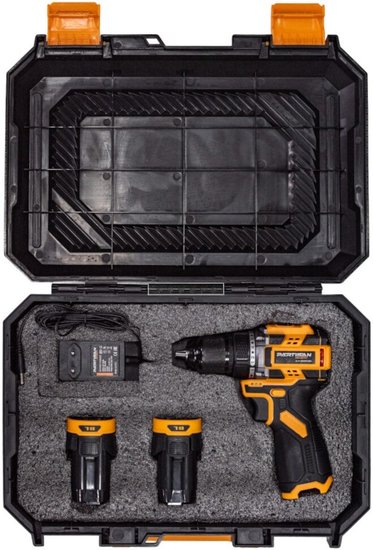 • Комплектация • дрель−шуруповерт• аккумулятор (2 шт)• зарядное устройство• кейс• руководство по эксплуатации• гарантийный талон