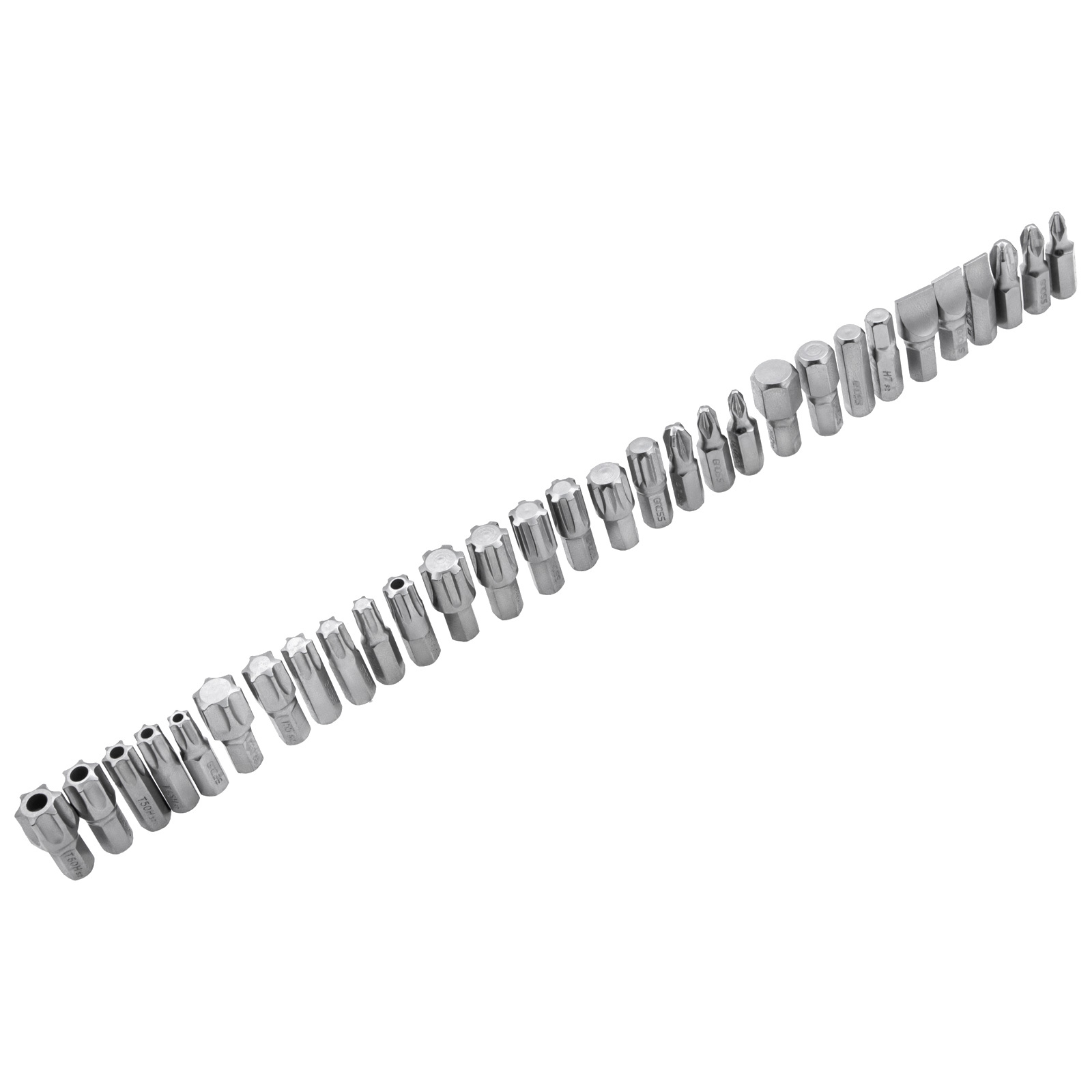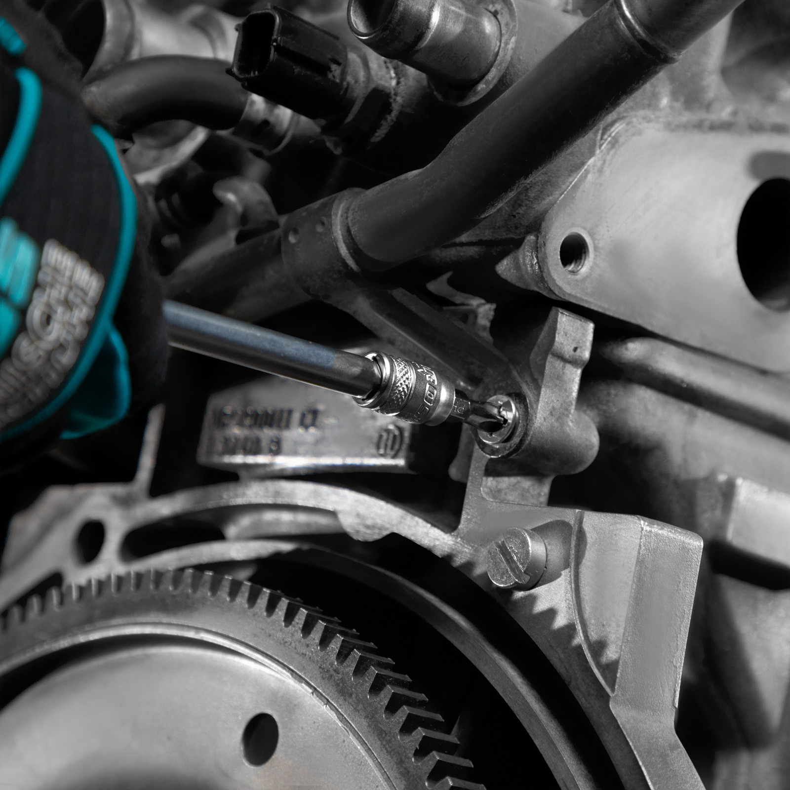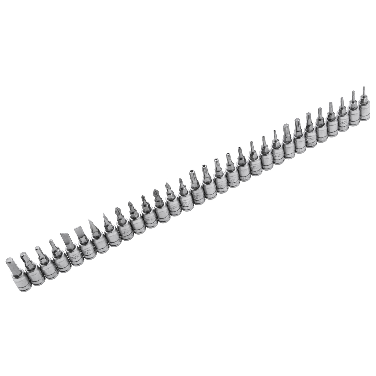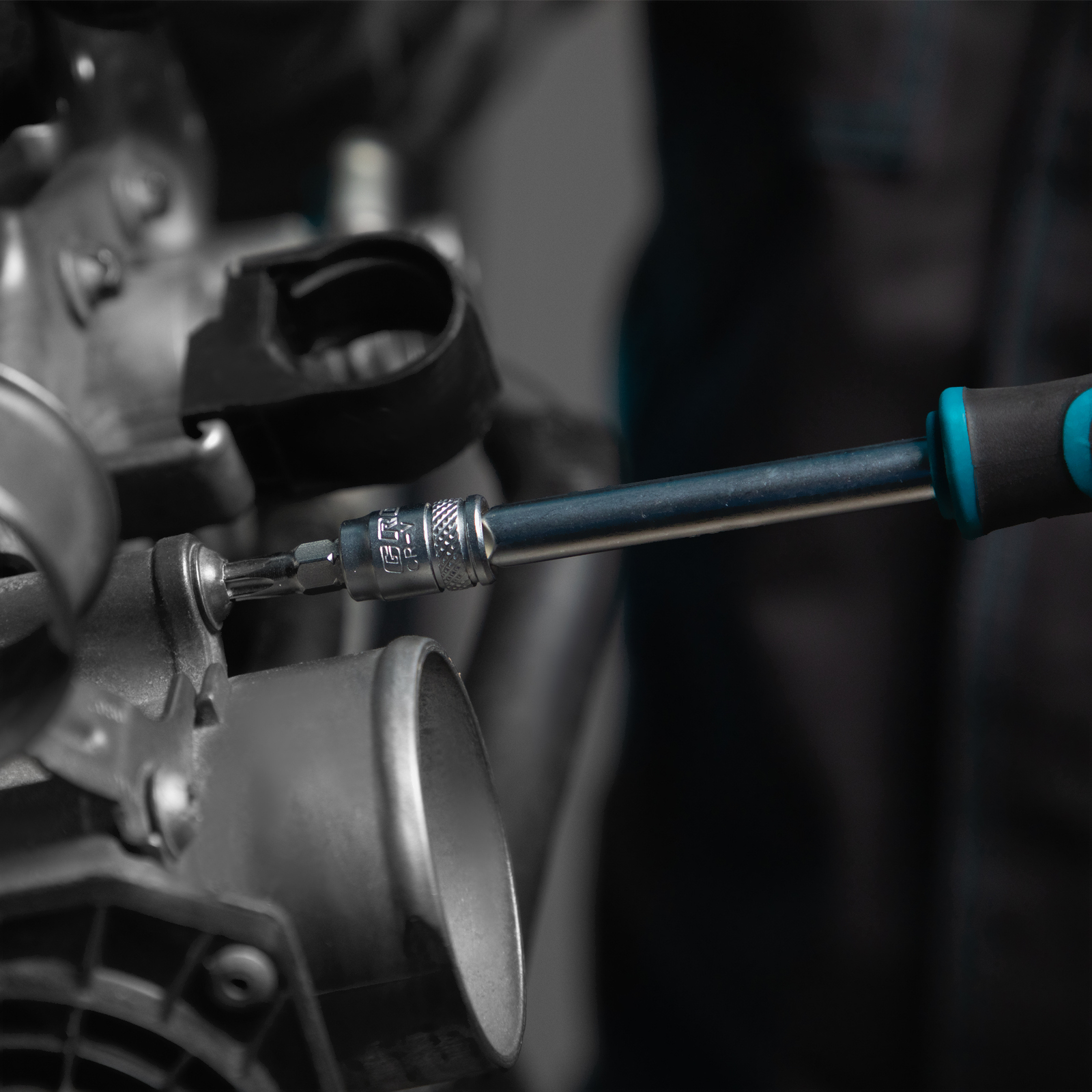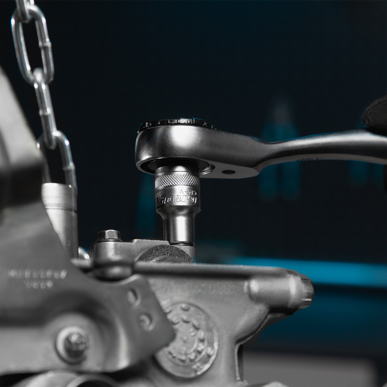 • В наборе трещотка, ключ, отвертка, вороток, удлинитель, спецголовки, биты, переходник, адаптер, кейс