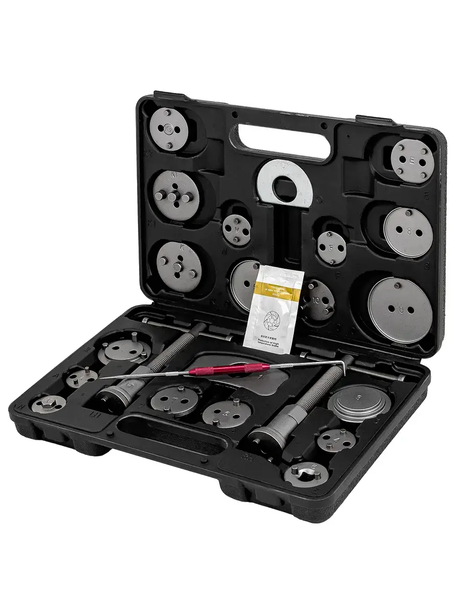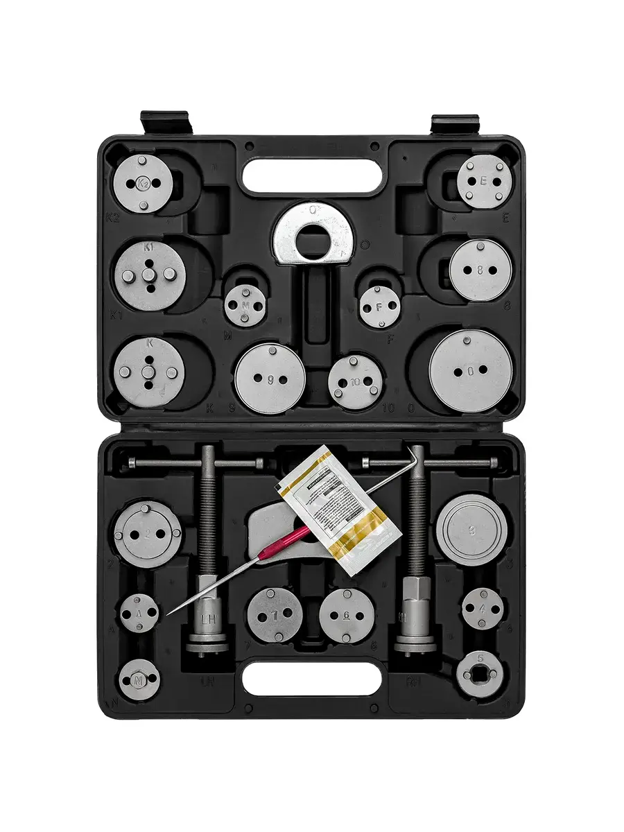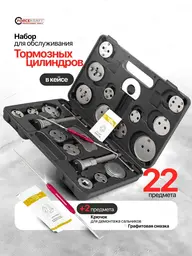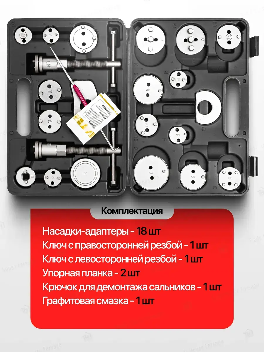 • В наборе кейс, насадка (18 шт), ключ (2 шт), планка (2 шт), крючок (1 шт), смазка (1 шт)