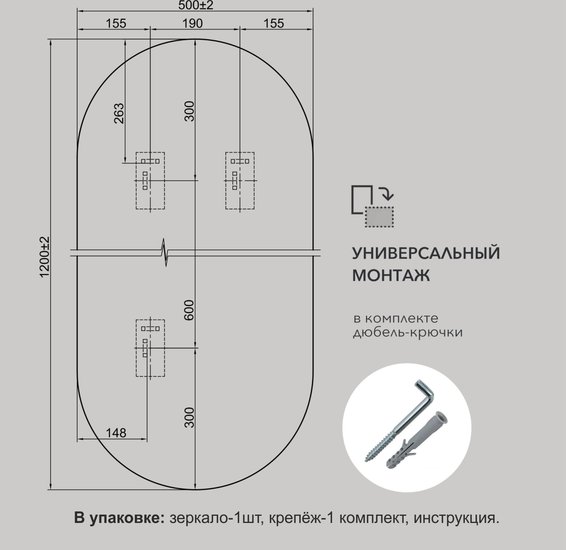 - ✅Ключевые характеристикиОвальное зеркало с размерами 1200 на 500 мм выполнено из качественного зеркального стекла и металлической рамы. Модель отличается шлифованной кромкой и нанесением УФ-печати; что придаёт изделию современный и стильный вид. Вес зеркала составляет 5.3 кг; что обеспечивает устойчивость и надёжность при эксплуатации.✅Преимущества и отличияМеталлическая рама обеспечивает долговечность и устойчивость конструкции; а отсутствие подсветки делает изделие универсальным для различных интерьеров. Подвесной способ установки позволяет легко разместить зеркало на стене; экономя пространство и создавая эффект визуального расширения комнаты.✅ПрактичностьЗеркало не требует дополнительного обслуживания; а гарантийный срок в 24 месяца и срок службы до 5 лет подтверждают высокое качество и надёжность. Модель подходит для использования в жилых и коммерческих помещениях; где важна функциональность и эстетика.✅УникальностьИспользование технологии УФ-печати на зеркальной поверхности придаёт изделию уникальный дизайн и защищает от повреждений. Шлифованная кромка обеспечивает безопасность при эксплуатации и подчёркивает аккуратность исполнения; что выделяет эту модель среди стандартных зеркал. ✅Ключевые характеристикиОвальное зеркало с размерами 1200 на 500 мм выполнено из качественного зеркального стекла и металлической рамы. Модель отличается шлифованной кромкой и нанесением УФ-печати; что придаёт изделию современный и стильный вид. Вес зеркала составляет 5.3 кг; что обеспечивает устойчивость и надёжность при эксплуатации.✅Преимущества и отличияМеталлическая рама обеспечивает долговечность и устойчивость конструкции; а отсутствие подсветки делает изделие универсальным для различных интерьеров. Подвесной способ установки позволяет легко разместить зеркало на стене; экономя пространство и создавая эффект визуального расширения комнаты.✅ПрактичностьЗеркало не требует дополнительного обслуживания; а гарантийный срок в 24 месяца и срок службы до 5 лет подтверждают высокое качество и надёжность. Модель подходит для использования в жилых и коммерческих помещениях; где важна функциональность и эстетика.✅УникальностьИспользование технологии УФ-печати на зеркальной поверхности придаёт изделию уникальный дизайн и защищает от повреждений. Шлифованная кромка обеспечивает безопасность при эксплуатации и подчёркивает аккуратность исполнения; что выделяет эту модель среди стандартных зеркал.