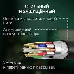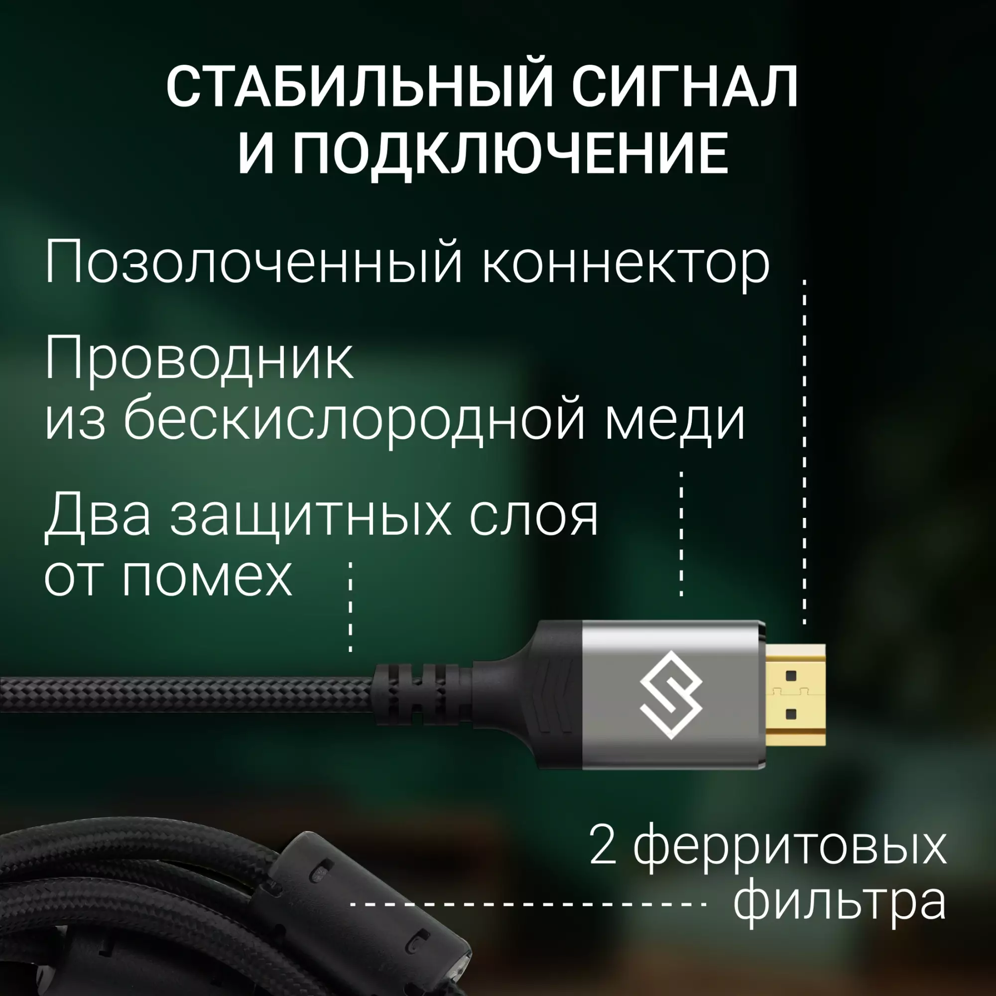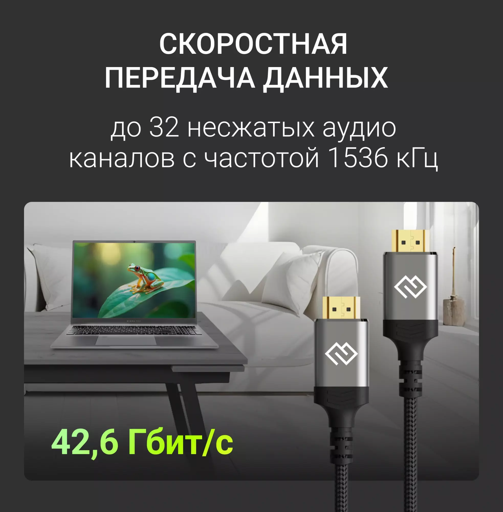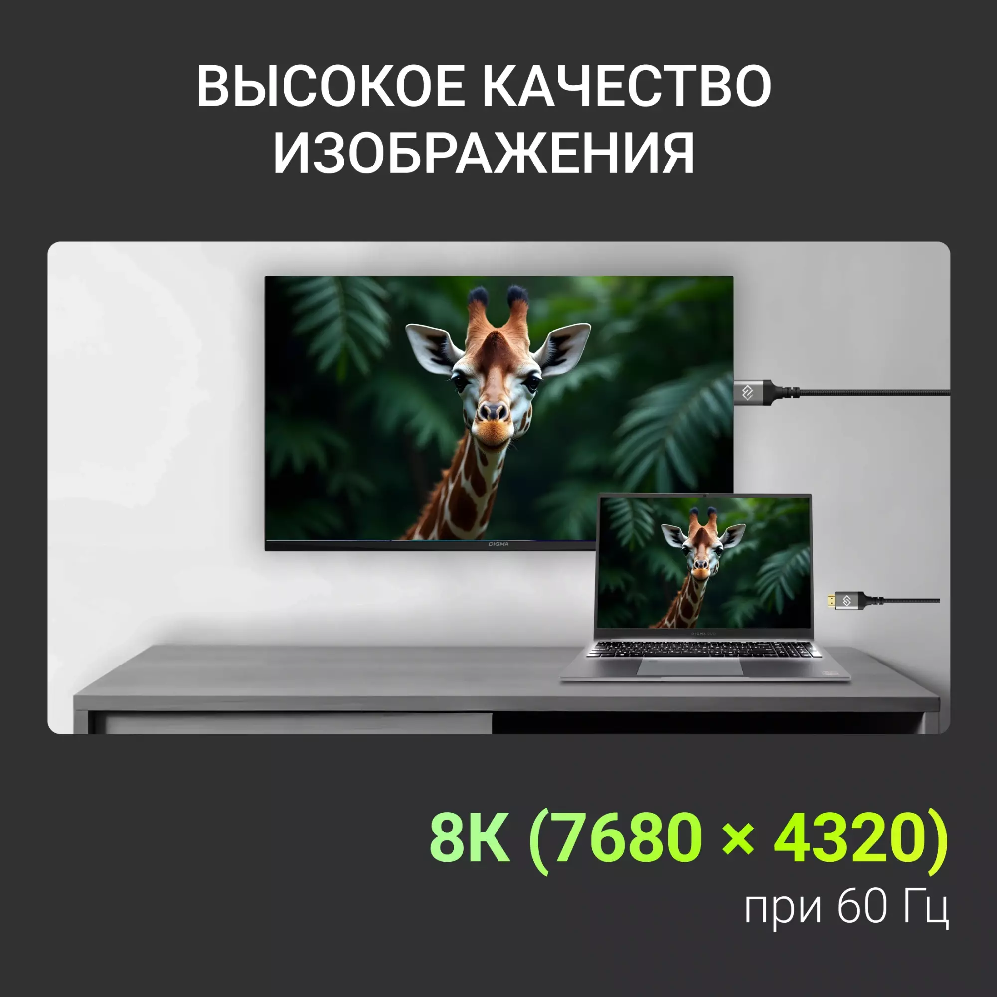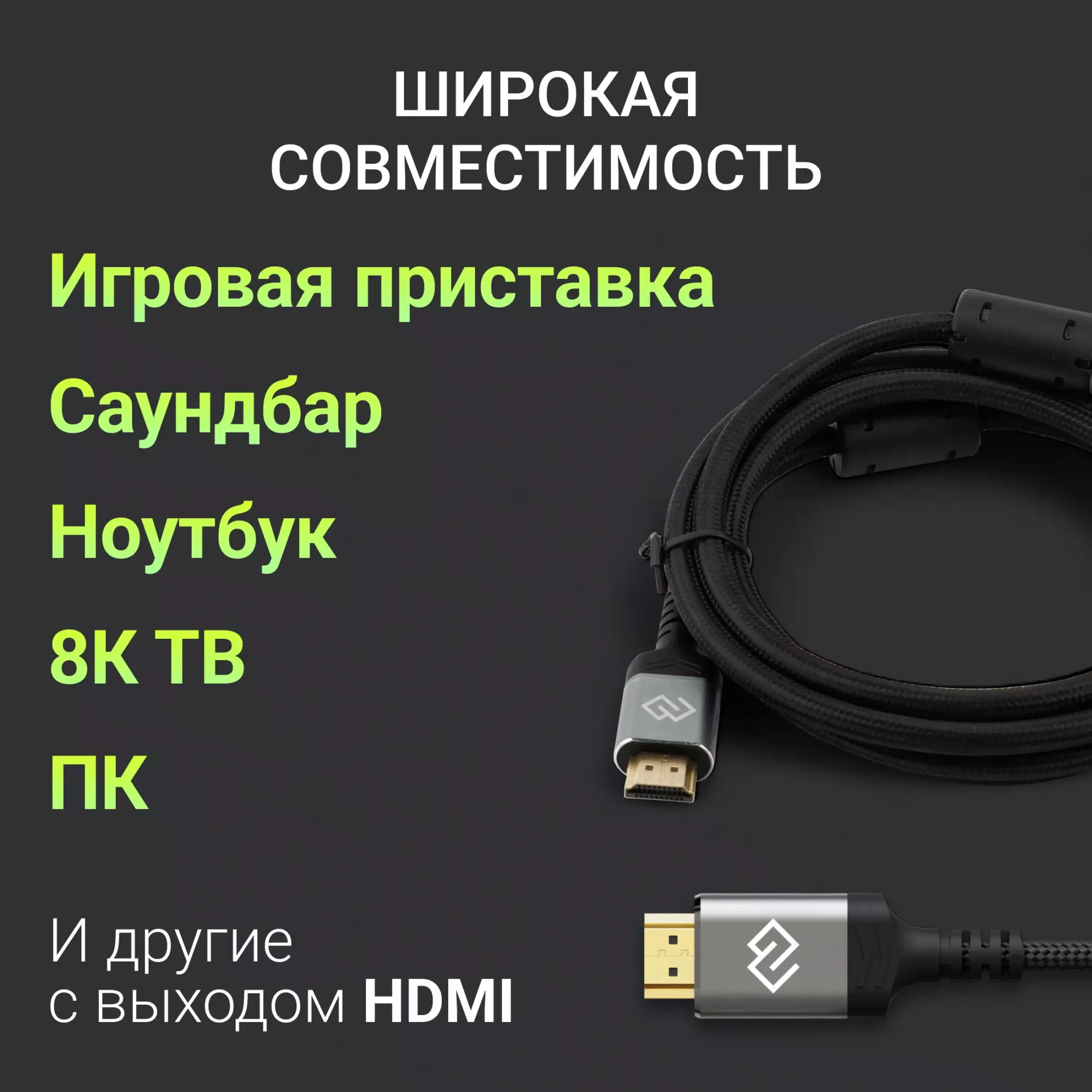 • Особенности HDMI кабель, 2.1V, 8K@60Hz, текстильная оплетка, 2 феритовых фильтра, медный проводник