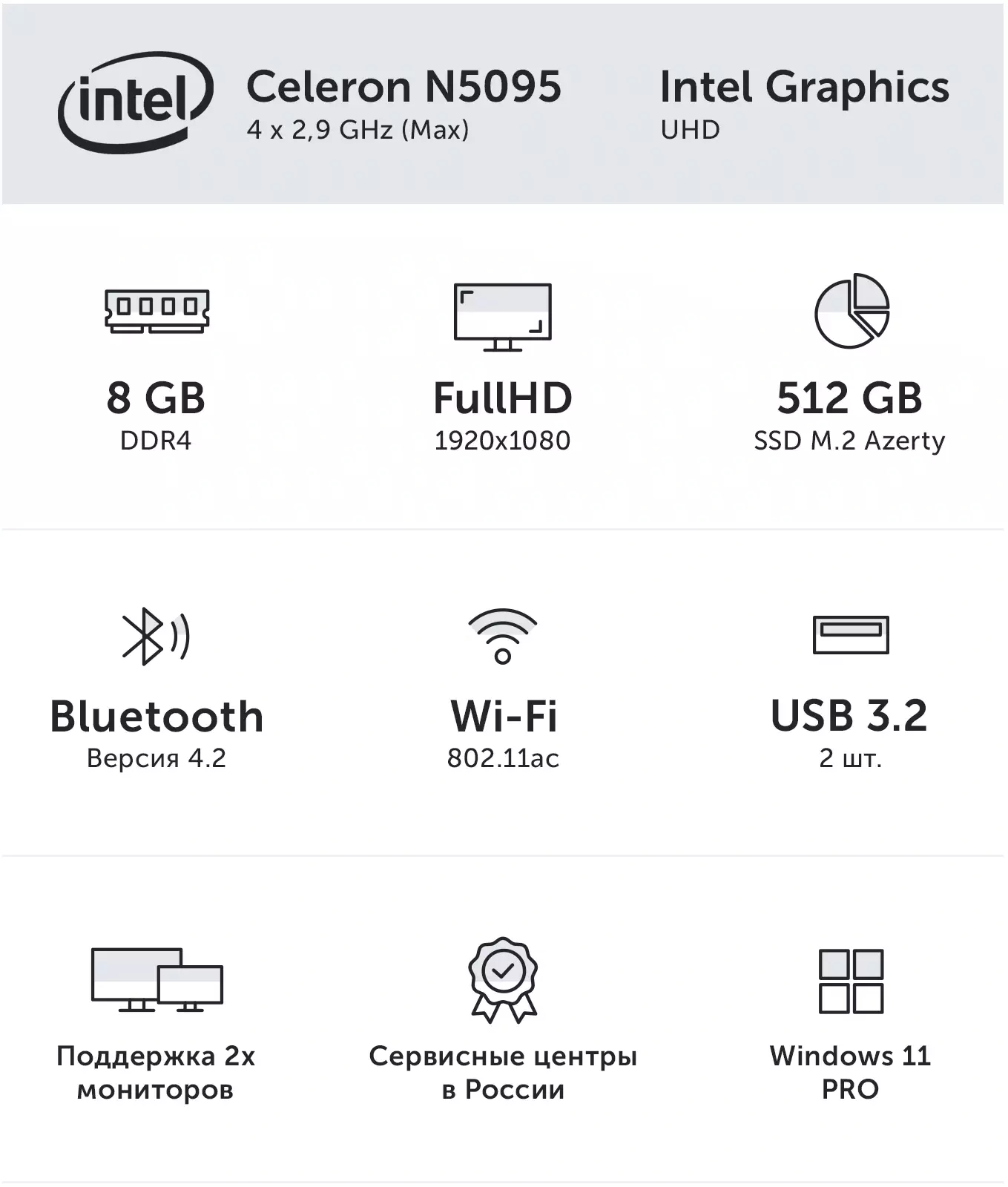 Ноутбук Azerty Story RB-1550, 15.6", IPS, Intel Celeron N5095, DDR4 8ГБ, SSD 512ГБ, Intel UHD Graphics, серебристый (120-0677)