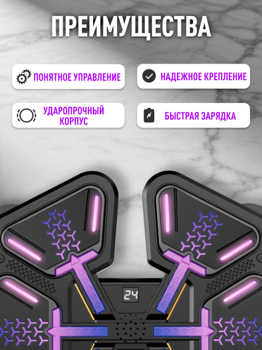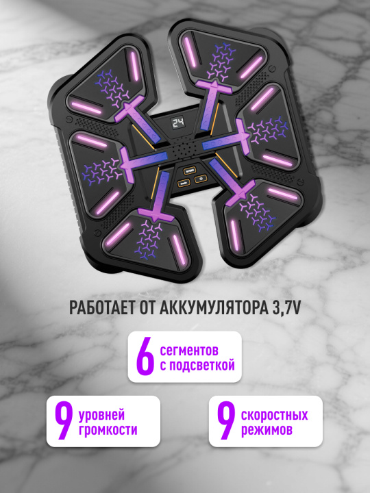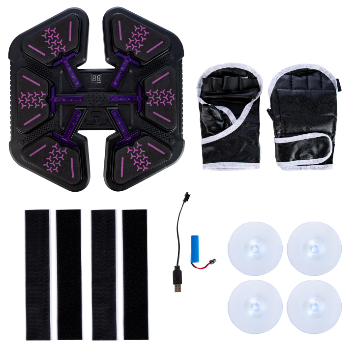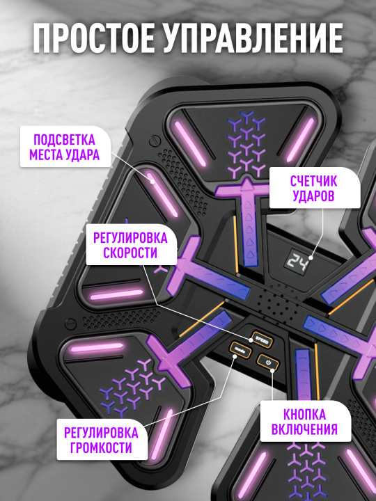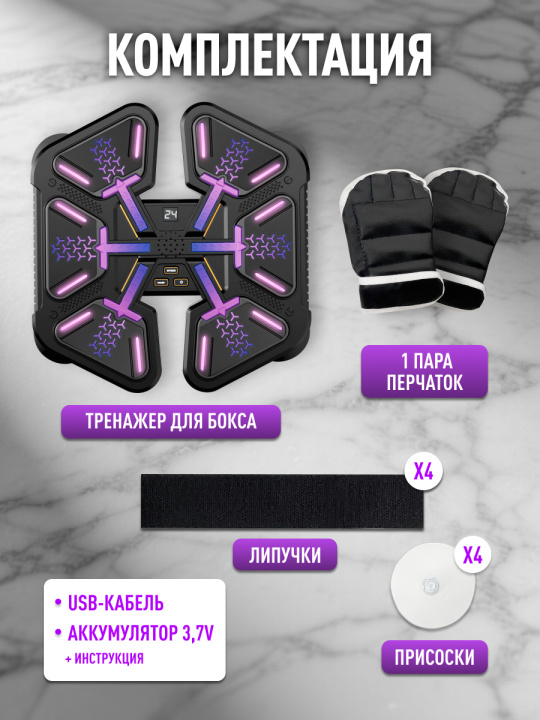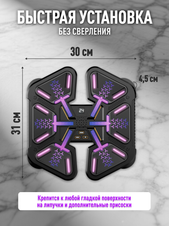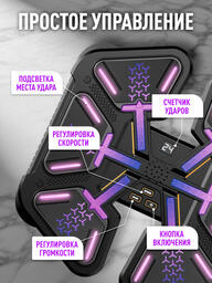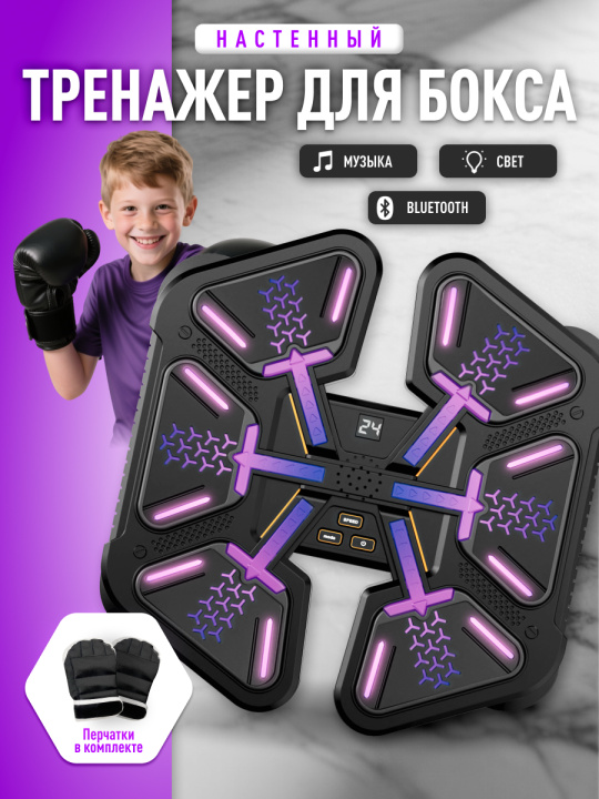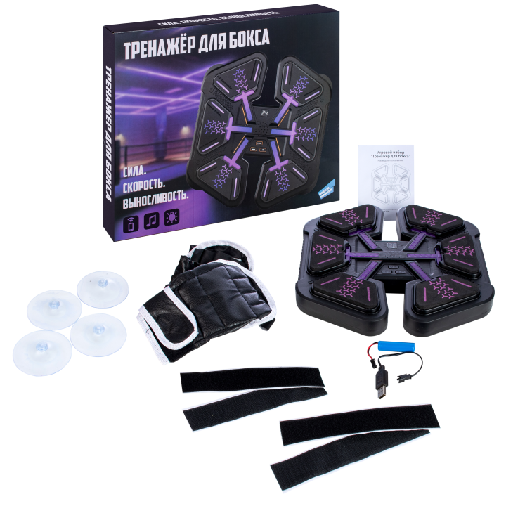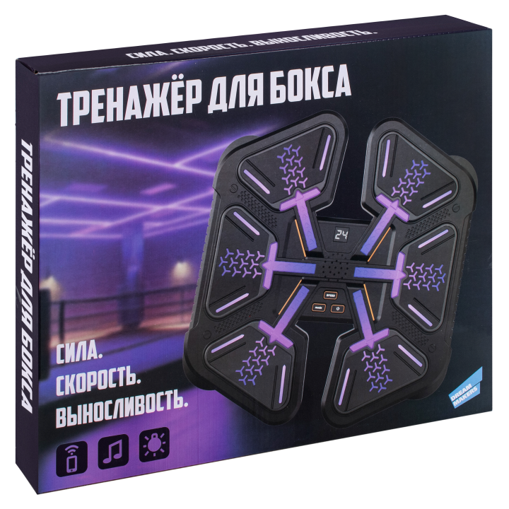 Игровой набор DREAM MAKERS-VARIOUS "Тренажер для бокса" Характеристики • Цвета: серый, фиолетовый • Питание: аккумулятор 3,7V (зарядка через USB) • Время работы: до 2 часов • Размеры тренажера: 30 × 31 × 4,5 см • Возраст: 6+ Комплектация • Тренажер с 6 сегментами подсветки • 1 пара перчаток • 4 липучки и присоски для крепления • USB-кабель • Инструкция Функции и правила использования Режимы тренировки: 9 скоростных уровней 9 уровней громкости Подсветка целевых сегментов Установка: Крепление на гладкую поверхность с помощью липучек и присосок Без сверления Тренировочный процесс: Нанесение ударов по подсвеченным сегментам Счетчик ударов для отслеживания прогресса Синхронизация со смартфоном по Bluetooth Особенности • Интерактивная система с световыми сигналами • Bluetooth-колонка для музыкального сопровождения • Компактный дизайн для домашнего использования • Развитие скорости, точности и координации • Универсальность для разных уровней подготовки Описание Интерактивный боксерский тренажер для эффективных домашних тренировок. 6 подсвечивающихся сегментов развивают скорость реакции, точность и координацию движений. Регулируемые режимы сложности и встроенная музыкальная система делают тренировки увлекательными для всей семьи. Идеален для кардионагрузок и развития силы рук и корпуса. Совместите фитнес и технологии — превратите тренировки в увлекательную игру! Рекомендуется для детей от 6 лет и взрослых, начинающих и опытных спортсменов. Характеристики Артикул: 7782F Ширина (см): 5 Длина (см): 38 Высота (см): 31 Возраст от: 6 Пол: Мальчикам / Девочкам
