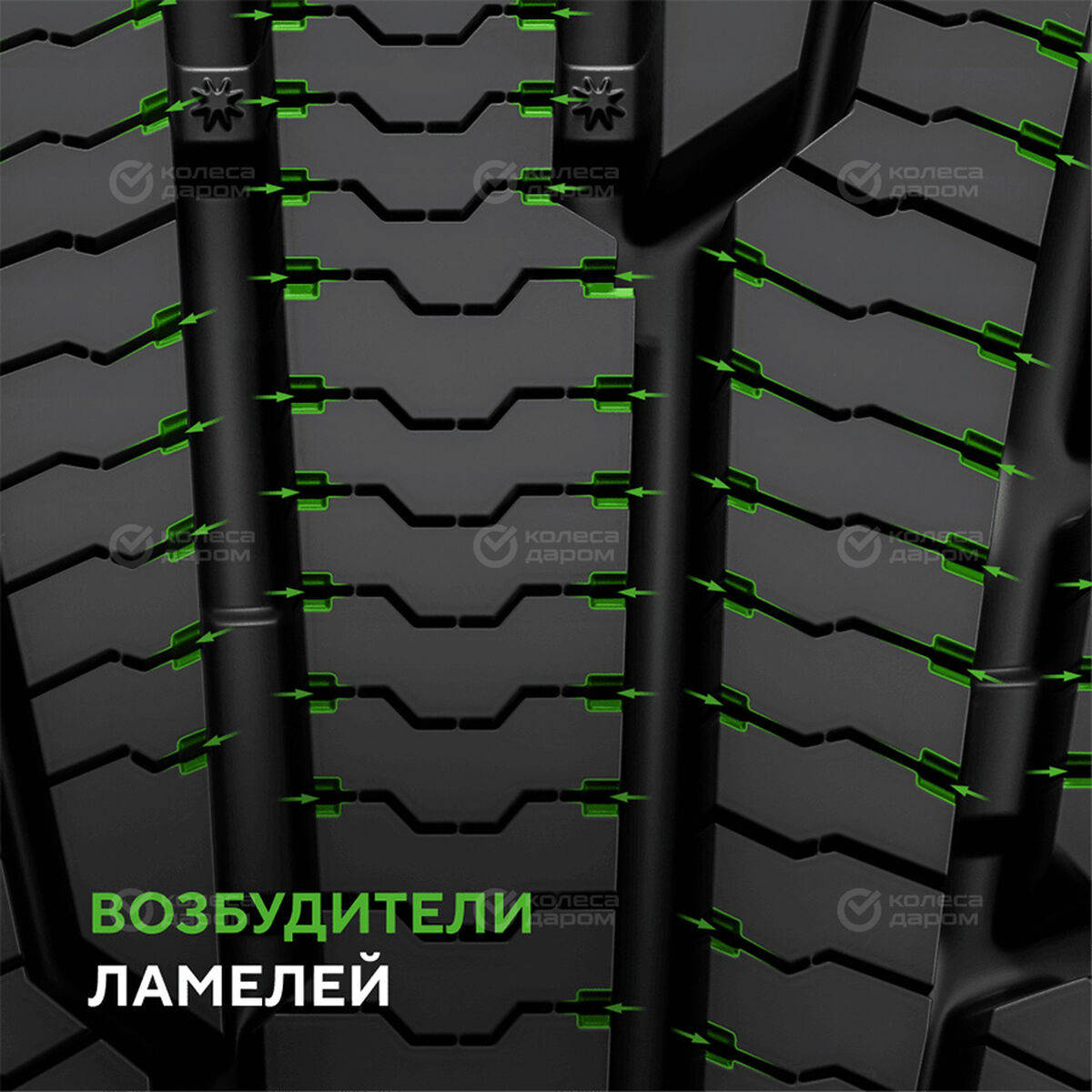 Активаторы ламелей в плечевой зоне протектора улучшают сцепление на обледенелой дороге, увеличивают площадь контакта с дорожным покрытием.