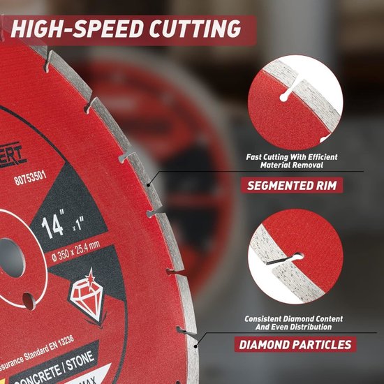 ✅Сегментированный алмазный диск предназначен для резки бетона; кирпичной кладки и блоков; обеспечивая высокую производительность и длительный срок службы. ✅Высококачественная алмазная матрица с постоянным содержанием алмазов и равномерным распределением гарантирует эффективное удаление материала и устойчивость к износу даже при работе с самыми твердыми поверхностями. ✅Диск изготовлен из высокопрочной легированной стали и оснащен сегментами высотой 10 мм; что обеспечивает надежную и безопасную резку без искр и прижогов. ✅Инструмент универсален и подходит для сухой и влажной резки различных материалов; включая бетон; камень; кирпич и брусчатку; что делает его идеальным выбором для профессионалов и любителей.✅Сегментированный алмазный диск предназначен для резки бетона; кирпичной кладки и блоков; обеспечивая высокую производительность и длительный срок службы. ✅Высококачественная алмазная матрица с постоянным содержанием алмазов и равномерным распределением гарантирует эффективное удаление материала и устойчивость к износу даже при работе с самыми твердыми поверхностями. ✅Диск изготовлен из высокопрочной легированной стали и оснащен сегментами высотой 10 мм; что обеспечивает надежную и безопасную резку без искр и прижогов. ✅Инструмент универсален и подходит для сухой и влажной резки различных материалов; включая бетон; камень; кирпич и брусчатку; что делает его идеальным выбором для профессионалов и любителей.