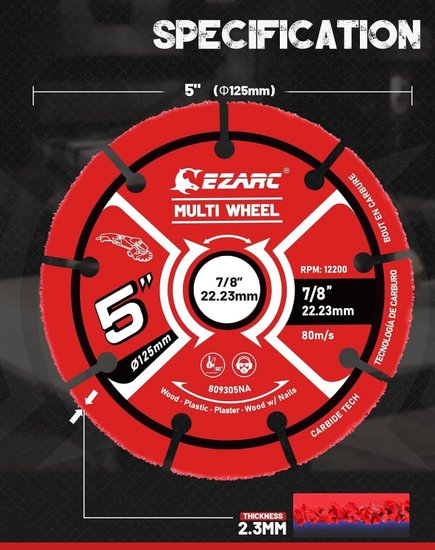 ✅Универсальный твердосплавный отрезной диск предназначен для резки дерева; дерева с гвоздями; ламината и пластика; обеспечивая высокую эффективность и долговечность благодаря технологии карбида EZARC. ✅Диск отличается высокой точностью резки с минимальной вибрацией и сегментированной конструкцией; которая способствует лучшему рассеиванию тепла и снижает риск подгорания материала. ✅Он подходит для работы с различными материалами; превращая угловую шлифовальную машину в универсальный инструмент для резки дерева; гипсокартона и ПВХ. ✅Прочный усиленный стальной корпус обеспечивает стабильность диаметра и безопасность при работе; а совместимость с большинством угловых шлифовальных машин делает его удобным и надежным выбором для профессионалов и домашних мастеров.✅Универсальный твердосплавный отрезной диск предназначен для резки дерева; дерева с гвоздями; ламината и пластика; обеспечивая высокую эффективность и долговечность благодаря технологии карбида EZARC. ✅Диск отличается высокой точностью резки с минимальной вибрацией и сегментированной конструкцией; которая способствует лучшему рассеиванию тепла и снижает риск подгорания материала. ✅Он подходит для работы с различными материалами; превращая угловую шлифовальную машину в универсальный инструмент для резки дерева; гипсокартона и ПВХ. ✅Прочный усиленный стальной корпус обеспечивает стабильность диаметра и безопасность при работе; а совместимость с большинством угловых шлифовальных машин делает его удобным и надежным выбором для профессионалов и домашних мастеров.