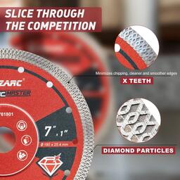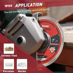 ✅Супертонкий алмазный диск диаметром 7 дюймов предназначен для резки плитки; мрамора; гранита и других твердых материалов. Высокопроизводительная матрица из легированной стали с равномерным распределением алмазов обеспечивает долговечность и эффективное удаление материала.✅Диск оснащен сегментами высотой 10 мм; что гарантирует длительный срок службы даже при работе с самыми сложными материалами. Супертонкие зубья X turbo mesh обеспечивают чистые и гладкие разрезы с минимальными сколами и сниженным боковым трением.✅Подходит для большинства плиткорезов и угловых шлифовальных машин с посадочным диаметром 7/8 дюйма. Интегрированный фланцевый дизайн обеспечивает стабильность и безопасность резки; а отверстия для глушителя снижают уровень шума и предотвращают перегрев.✅Диск универсален для сухой и влажной резки фарфора; керамики; гранита; мрамора; кирпича; сланца и цементной подложки. Идеален как для профессиональных укладчиков плитки; так и для домашних мастеров.✅Супертонкий алмазный диск диаметром 7 дюймов предназначен для резки плитки; мрамора; гранита и других твердых материалов. Высокопроизводительная матрица из легированной стали с равномерным распределением алмазов обеспечивает долговечность и эффективное удаление материала.✅Диск оснащен сегментами высотой 10 мм; что гарантирует длительный срок службы даже при работе с самыми сложными материалами. Супертонкие зубья X turbo mesh обеспечивают чистые и гладкие разрезы с минимальными сколами и сниженным боковым трением.✅Подходит для большинства плиткорезов и угловых шлифовальных машин с посадочным диаметром 7/8 дюйма. Интегрированный фланцевый дизайн обеспечивает стабильность и безопасность резки; а отверстия для глушителя снижают уровень шума и предотвращают перегрев.✅Диск универсален для сухой и влажной резки фарфора; керамики; гранита; мрамора; кирпича; сланца и цементной подложки. Идеален как для профессиональных укладчиков плитки; так и для домашних мастеров.
