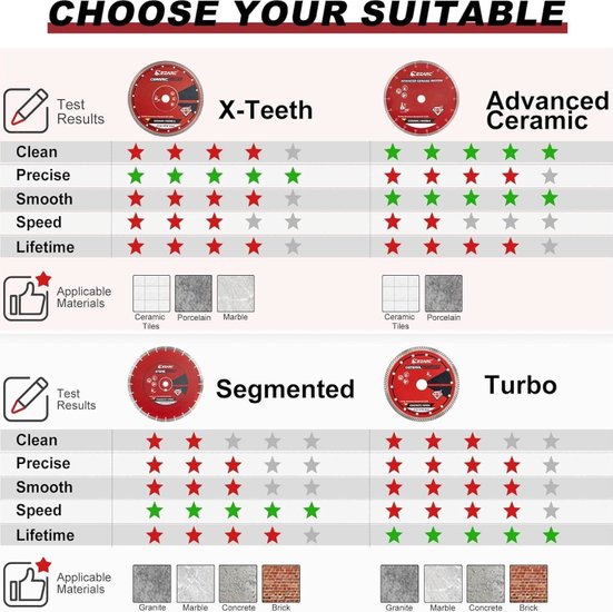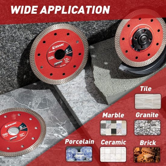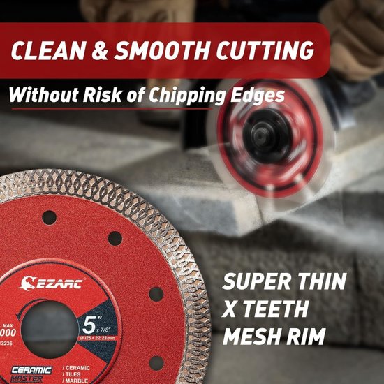 ✅Супертонкий алмазный диск диаметром 5 дюймов предназначен для резки плитки; мрамора; гранита и других твердых материалов. Высокопроизводительная матрица из легированной стали с равномерным распределением алмазов обеспечивает долговечность и эффективное удаление материала.✅Диски оснащены зубьями X turbo mesh; которые обеспечивают чистые и гладкие разрезы с минимальными сколами и боковым трением. Они подходят для работы с мелкозернистым сланцем; фарфором и керамикой; гарантируя высокое качество резки без повреждений.✅Размер диска 5 дюймов с посадочным отверстием 7/8 дюйма подходит для большинства плиткорезов и угловых шлифовальных машин. Толщина сегмента составляет 1 мм; высота сегмента 10 мм; а максимальная скорость вращения достигает 12 000 об/мин.✅Профессиональный дизайн с интегрированным фланцем обеспечивает стабильность и безопасность при резке; снижая вибрацию и уровень шума. Диски универсальны для сухой и влажной резки различных материалов; что делает их идеальным выбором для профессионалов и домашних мастеров.✅Супертонкий алмазный диск диаметром 5 дюймов предназначен для резки плитки; мрамора; гранита и других твердых материалов. Высокопроизводительная матрица из легированной стали с равномерным распределением алмазов обеспечивает долговечность и эффективное удаление материала.✅Диски оснащены зубьями X turbo mesh; которые обеспечивают чистые и гладкие разрезы с минимальными сколами и боковым трением. Они подходят для работы с мелкозернистым сланцем; фарфором и керамикой; гарантируя высокое качество резки без повреждений.✅Размер диска 5 дюймов с посадочным отверстием 7/8 дюйма подходит для большинства плиткорезов и угловых шлифовальных машин. Толщина сегмента составляет 1 мм; высота сегмента 10 мм; а максимальная скорость вращения достигает 12 000 об/мин.✅Профессиональный дизайн с интегрированным фланцем обеспечивает стабильность и безопасность при резке; снижая вибрацию и уровень шума. Диски универсальны для сухой и влажной резки различных материалов; что делает их идеальным выбором для профессионалов и домашних мастеров.