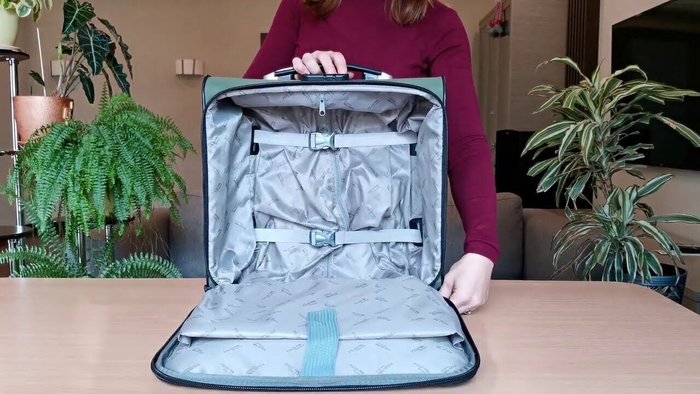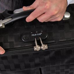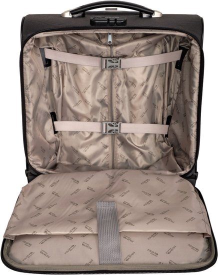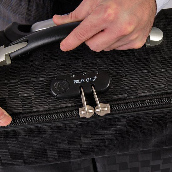 • Чемодан от компании "Polar" на двух колёсах выполнен из прочного материала (нейлона и полиэстера). Подходит как ручная кладь. Чемодан закрывается на молнию, присутствует также встроенный кодовый замок. Внутри есть одно большое отделение , в котором присутствуют ремни для фиксации вещей, отделение для ноутбука и маленький карман на молнии для документов. Снаружи расположен объёмный карман на молнии для мелких вещей. У чемодана есть небольшая ручка для переноски и металлическая ручка, которая выдвигается на 67 см. Чемодан от компании "Polar" на двух колёсах выполнен из прочного материала (нейлона и полиэстера). Подходит как ручная кладь. Чемодан закрывается на молнию, присутствует также встроенный кодовый замок. Внутри есть одно большое отделение , в котором присутствуют ремни для фиксации вещей, отделение для ноутбука и маленький карман на молнии для документов. Снаружи расположен объёмный карман на молнии для мелких вещей. У чемодана есть небольшая ручка для переноски и металлическая ручка, которая выдвигается на 67 см.