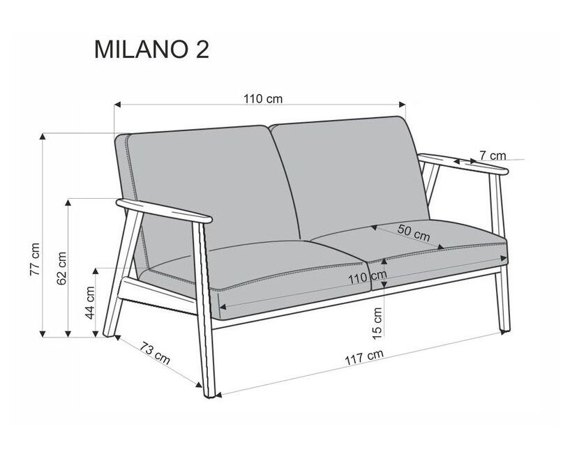 Диван HALMAR MILANO 2S tap. Castel 15 бежевый/орех