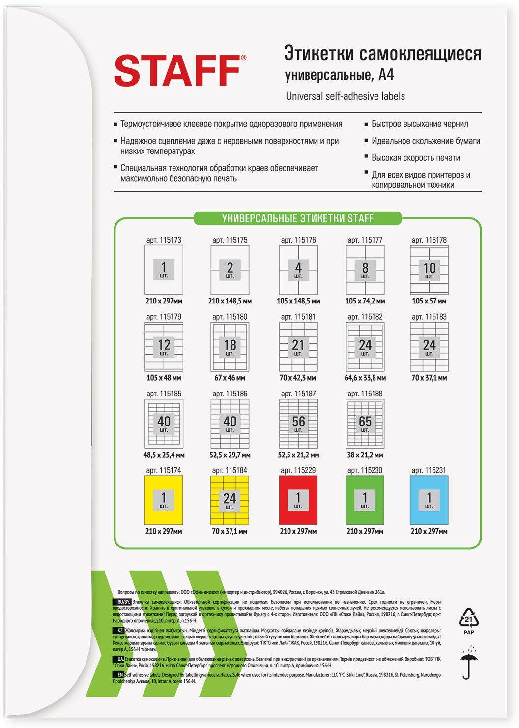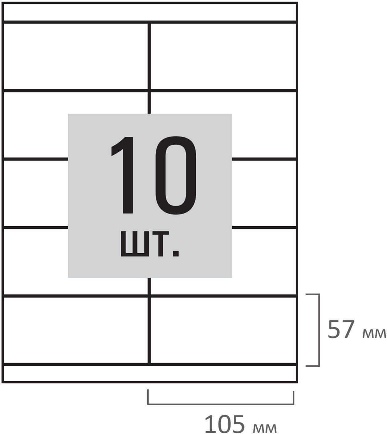 Этикетки Staff A4 115178 , сегментов 10шт, 105x57, 80г/м2, 100л., белый