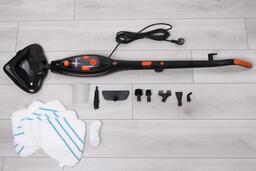 ✅Ключевые характеристикиПаровая швабра предназначена для эффективной и экологичной уборки различных поверхностей в домашних условиях. Мощность 1300 Вт обеспечивает быстрое образование пара, емкость резервуара 0.3 литра позволяет работать до 20 минут без дозаправки, а длина шнура 4.76 м дает свободу перемещения по комнате.✅Преимущества и отличияУстройство не требует использования бытовой химии, что делает его безопасным для аллергиков и семей с детьми. Благодаря вращающейся на 180 градусов головке швабра легко проникает в труднодоступные места. Регулируемый поток пара позволяет адаптировать интенсивность очистки к типу поверхности.✅ПрактичностьМодель оснащена складной ручкой для компактного хранения и возможностью трансформации в ручной отпариватель. В комплекте идут разнообразные насадки для чистки полов, ковров, стекол, швов и труднодоступных мест, что расширяет функционал устройства.✅УникальностьШвабра выделяется быстрым временем готовности к работе - всего 20 секунд после включения. Влагозащита уровня IPX4 повышает безопасность использования, а продуманная эргономика упрощает ежедневное применение даже в больших помещениях.✅Ключевые характеристикиПаровая швабра предназначена для эффективной и экологичной уборки различных поверхностей в домашних условиях. Мощность 1300 Вт обеспечивает быстрое образование пара, емкость резервуара 0.3 литра позволяет работать до 20 минут без дозаправки, а длина шнура 4.76 м дает свободу перемещения по комнате.✅Преимущества и отличияУстройство не требует использования бытовой химии, что делает его безопасным для аллергиков и семей с детьми. Благодаря вращающейся на 180 градусов головке швабра легко проникает в труднодоступные места. Регулируемый поток пара позволяет адаптировать интенсивность очистки к типу поверхности.✅ПрактичностьМодель оснащена складной ручкой для компактного хранения и возможностью трансформации в ручной отпариватель. В комплекте идут разнообразные насадки для чистки полов, ковров, стекол, швов и труднодоступных мест, что расширяет функционал устройства.✅УникальностьШвабра выделяется быстрым временем готовности к работе - всего 20 секунд после включения. Влагозащита уровня IPX4 повышает безопасность использования, а продуманная эргономика упрощает ежедневное применение даже в больших помещениях.