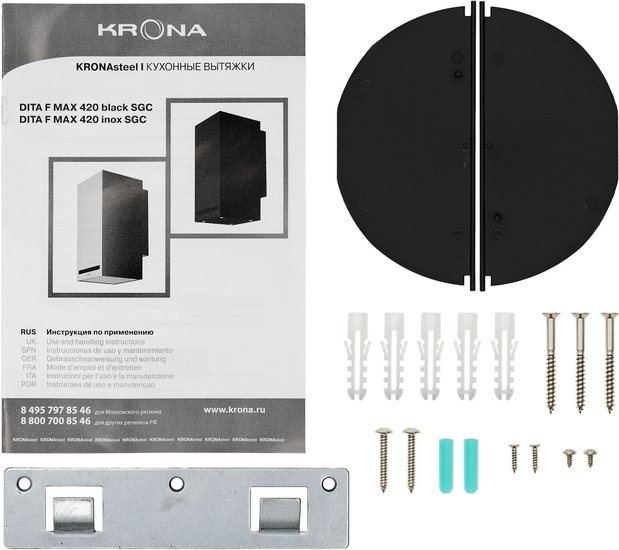 • Комплектация вытяжка, алюминиевый жироулавливающий фильтр, крепеж, инструкция, гарантийный талон