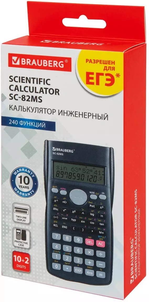 ОписаниеНепрограммируемый инженерный калькулятор BRAUBERG SC-82MS выполняет все основные вычисления, которые понадобятся школьникам на экзаменах и контрольных работах. Сертифицирован для использования на ЕГЭ и ОГЭ по физике, химии, географии.