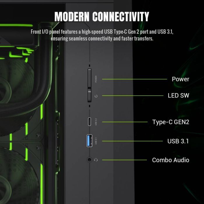 • Місця для додаткових вентиляторів Top 3x12 or 2х14 см , Bottom 3x12 см , Side 2x12 см
