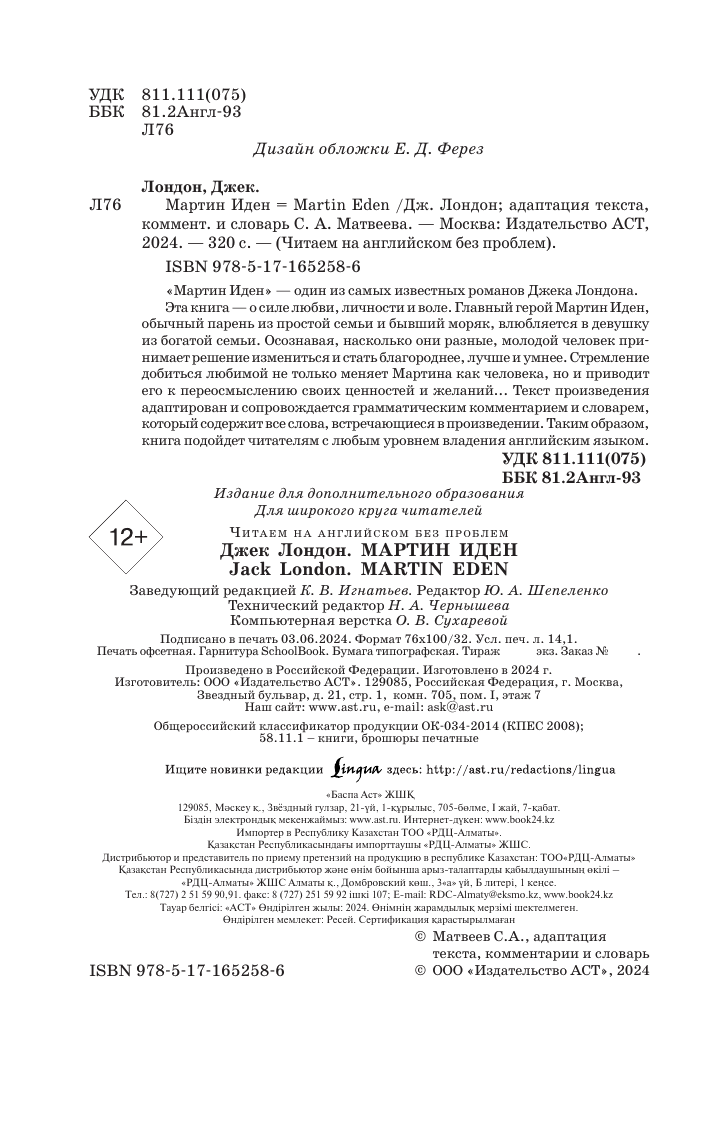 Книга АСТ Мартин Иден. Martin Eden, мягкая обложка (Лондон Джек)