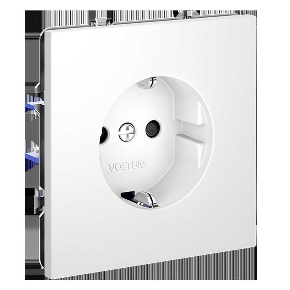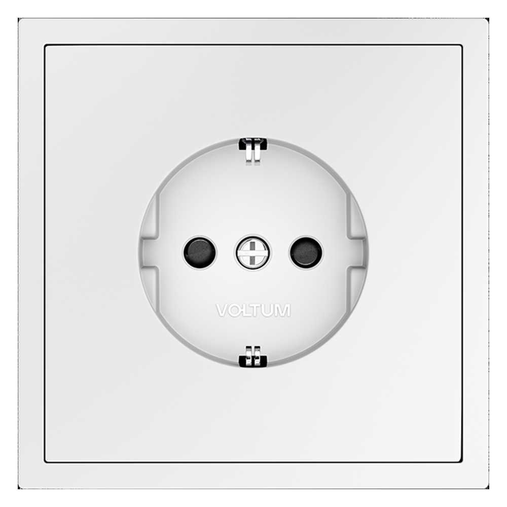 Розетка встраиваемая Voltum S70 с заземлением и защитными шторками, 16А, (белый матовый) VLS040202
