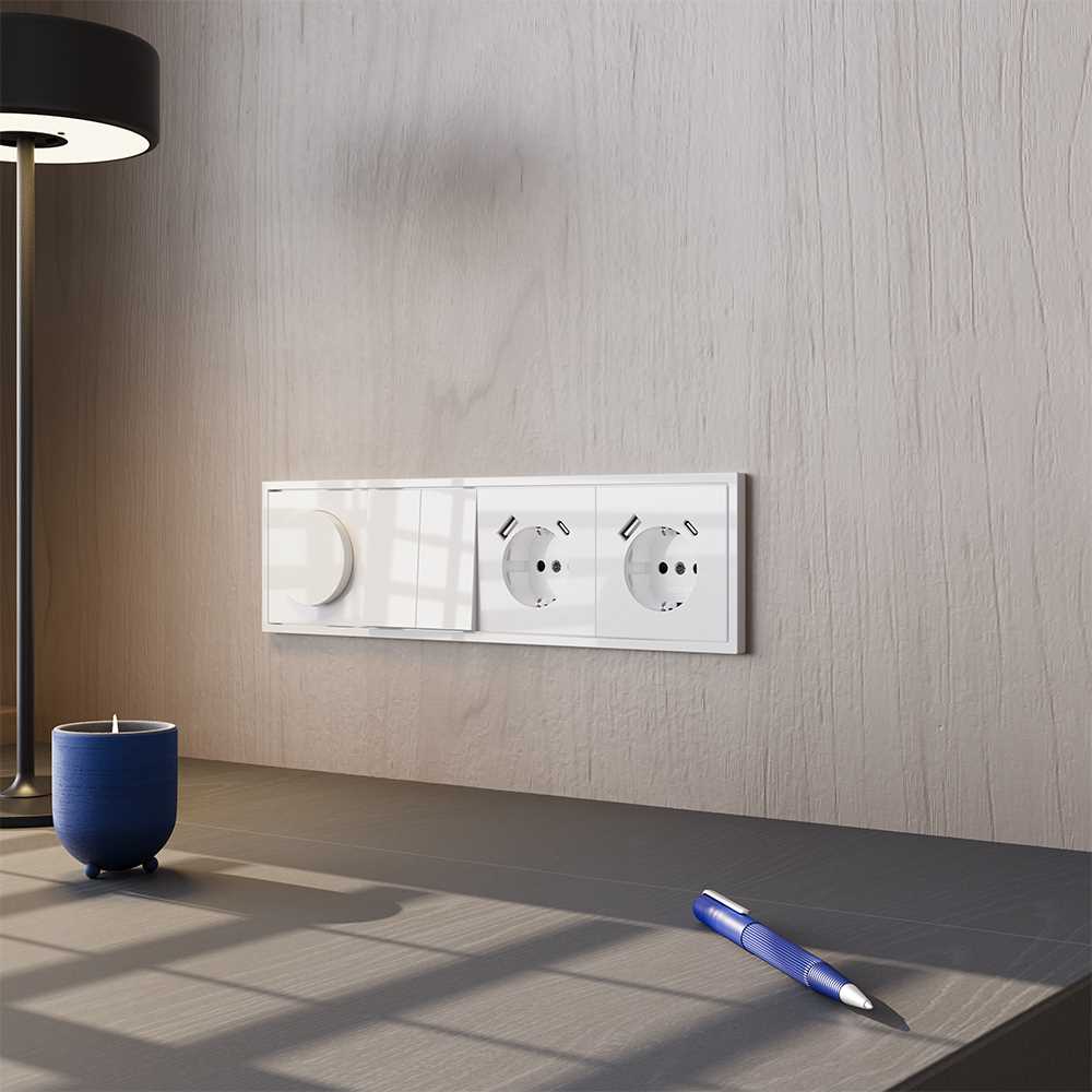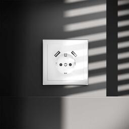 Розетка встраиваемая Voltum S70 с заземлением и защитными шторками, 16А, с USB, A+A, (белый глянцевы VLS040401