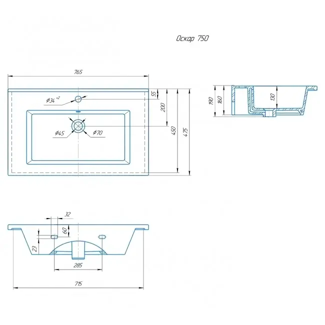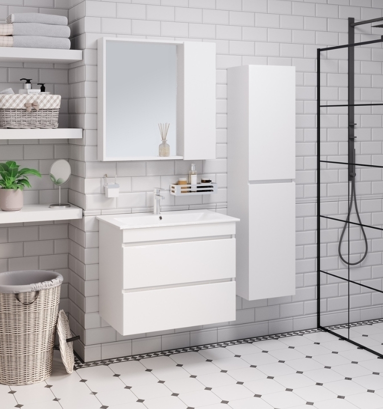 Тумба с умывальником Runo Манхэттен 75 + Оскар 75 (подвесная, белый)