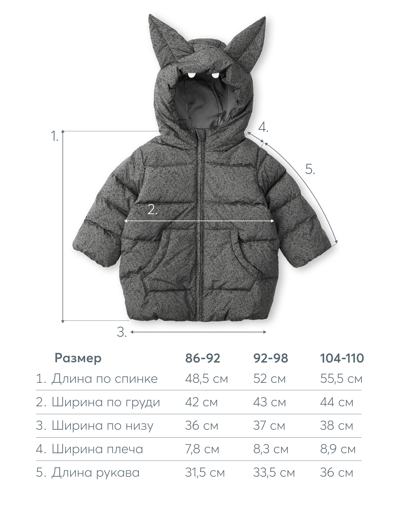 Эта весенняя куртка для мальчика и девочки - идеальный выбор для холодного времени года. Куртка детская с натуральным утеплителем (50% гусиного пуха, 50% пера) обеспечивает максимальное тепло и комфорт ребенку. Демисезонная куртка для девочки и мальчика имеет большой капюшон, который плотно прилегает и закрывает голову, уши, шею и подбородок, защищая их от ветра. Молния до подбородка гарантирует надежную защиту шеи и сохранение тепла. Внутри рукавов вшиты манжеты из влагоотталкивающего материала, которые обеспечивают дополнительную защиту от непогоды. Куртка детская имеет большие накладные карманы, в которые удобно прятать руки, как в муфту. Стильные детали в виде ушек на капюшоне делают эту куртку для девочки ярким элементом гардероба. Куртка на весну для мальчика продумана до мелочей: каждая деталь изготовлена с вниманием к комфорту и практичности. Особенности • 3 необычных дизайна • Благородные классические цвета • Натуральный утеплитель • Капюшон плотно прилегает • Молния до подбородка • Передние карманы Уважаемые покупатели! Оттенок изделия вживую может незначительно отличатся от фотографий на вашем экране.