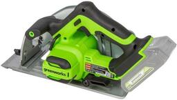 Аккумуляторная циркулярная пила Greenworks 24В GD24CSK4 (арт.1500907CUB) — это мощный и универсальный инструмент, который идеально подходит для работы на стройплощадке, в мастерской или дома. Она легко справляется с резкой древесных материалов толщиной до 63 мм, обеспечивая точность и безопасность в любых условиях.Пила оснащена бесщёточным двигателем DigiPro™, который обеспечивает высокую производительность и стабильность работы даже под нагрузкой. Для повышения удобства эксплуатации инструмент оснащён функцией плавного пуска, LED-подсветкой, съёмным параллельным упором и системой регулировки угла наклона в диапазоне 0-50°.Преимущества модели:Бесщеточный двигатель DigiPro™: Обеспечивает долговечность, эффективное использование энергии аккумулятора и высокую скорость реза без потери мощности.Большая глубина реза: Максимальная глубина реза составляет 63 мм при угле 90° и 43 мм при угле 45°, что позволяет работать с различными материалами и толщинами.Универсальность: Регулируемый угол наклона (0-50°) позволяет выполнять резы под углом, расширяя возможности инструмента. Регулируемая глубина реза (0–63 мм) легко настраивается с помощью удобного фиксатора.Съёмный патрубок для подключения пылесоса: Позволяет минимизировать количество пыли и опилок, поддерживая чистоту рабочего места.Простота обслуживания: Блокировка шпинделя и шестигранный ключ в комплекте обеспечивают удобную замену пильного диска.Подвижный защитный кожух диска: Защищает руки пользователя и предотвращает попадание мусора.Плавный пуск и защита от случайного запуска: Исключает рывки при включении инструмента и обеспечивает защиту от непреднамеренного включения.Безопасность: Подвижный защитный кожух диска защищает руки пользователя и предотвращает попадание мусора. Система защиты от отдачи при закусывании оснастки снижает риск травм.LED-подсветка рабочей зоны: Обеспечивает отличную видимость при работе в условиях низкой освещенности.Эргономичный дизайн: Корпус с нескользящим покрытием обеспечивает комфортный и надёжный хват.Циркулярная пила Greenworks 24V GD24CSK4 работает от аккумулятора Greenworks 24В, совместимого с 70 инструментами из линейки Greenworks 24V. Это позволяет использовать один и тот же аккумулятор для разных задач, что экономит средства и упрощает эксплуатацию.Аккумуляторная циркулярная пила Greenworks 24В GD24CSK4 (арт.1500907CUB) — это мощный и универсальный инструмент, который идеально подходит для работы на стройплощадке, в мастерской или дома. Она легко справляется с резкой древесных материалов толщиной до 63 мм, обеспечивая точность и безопасность в любых условиях.Пила оснащена бесщёточным двигателем DigiPro™, который обеспечивает высокую производительность и стабильность работы даже под нагрузкой. Для повышения удобства эксплуатации инструмент оснащён функцией плавного пуска, LED-подсветкой, съёмным параллельным упором и системой регулировки угла наклона в диапазоне 0-50°.Преимущества модели:Бесщеточный двигатель DigiPro™: Обеспечивает долговечность, эффективное использование энергии аккумулятора и высокую скорость реза без потери мощности.Большая глубина реза: Максимальная глубина реза составляет 63 мм при угле 90° и 43 мм при угле 45°, что позволяет работать с различными материалами и толщинами.Универсальность: Регулируемый угол наклона (0-50°) позволяет выполнять резы под углом, 