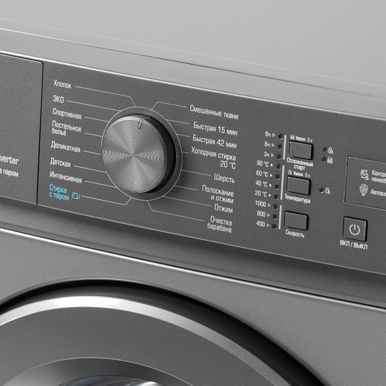 Все программыХлопок, Деликатная, Интенсивная, Смешанные ткани, Быстрая 42/15 мин, Холодная стирка 20°С, Отжим, Шерсть, Полоскание и отжим, Очистка барабана, ЭКО, Детская, Постельное белье, Спортивная, Стирка с паром