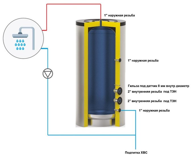 - Область применения: Аккумулирование нагретой санитарной воды.Материал изделия: Углеродистая сталь с покрытием из стеклокерамической эмали премиум класса.Бак предназначен для аккумулирования тепла от электротэнов, которые размещаются в отверстия диаметром 2″ внутренняя резьба. Стандартное количество отверстий – 2 шт. Опционально можно разместить до 10 шт. По желанию заказчика, возможно исполнение индивидуальной конфигурации данного бака.Опционально в состав бака входит защитный магниевый анод (расположен под теплоизоляцией в верхнем куполе).Изоляция бака выполнена по технологии NOFIRE из полиэфирного материала толщиной 70 мм, поддающегося 100% вторичной переработке (экологически безопасный материал), материал обладает высоким коэффициентом сопротивления теплопередачи, а также высоким классом огнестойкости класса B-s2d0 в соответствии с Европейскими требованиями EN 13501.С наружной стороны баки в стандартном исполнении объемом до 1500 л включительно защищены пластиковой обшивкой, либо матерчатой обшивкой (по запросу). Цветовую гамму изоляций уточняйте у продающей стороны.Наружная поверхность бака окрашена термостойкой краскойБаки серии ATP ETRO ЭМАЛЬ применяются в системах с электрическими нагревательными элементами (ТЭНами). В связи с этим, на баке может присутствовать от 2 до 10 отводов с внутренним диаметром резьбы 2″. В базовой оснастке бак поставляется только с двумя такими отводами. Также бак может быть оснащен ревизионным фланцем, для технического обслуживания емкости (опционально). Область применения: Аккумулирование нагретой санитарной воды.Материал изделия: Углеродистая сталь с покрытием из стеклокерамической эмали премиум класса.Бак предназначен для аккумулирования тепла от электротэнов, которые размещаются в отверстия диаметром 2″ внутренняя резьба. Стандартное количество отверстий – 2 шт. Опционально можно разместить до 10 шт. По желанию заказчика, возможно исполнение индивидуальной конфигурации данного бака.Опционально в состав бака входит защитный магниевый анод (расположен под теплоизоляцией в верхнем куполе).Изоляция бака выполнена по технологии NOFIRE из полиэфирного материала толщиной 70 мм, поддающегося 100% вторичной переработке (экологически безопасный материал), материал обладает высоким коэффициентом сопротивления теплопередачи, а также высоким классом огнестойкости класса B-s2d0 в соответствии с Европейскими требованиями EN 13501.С наружной стороны баки в стандартном исполнении объемом до 1500 л включительно защищены пластиковой обшивкой, либо матерчатой обшивкой (по запросу). Цветовую гамму изоляций уточняйте у продающей стороны.Наружная поверхность бака окрашена термостойкой краскойБаки серии ATP ETRO ЭМАЛЬ применяются в системах с электрическими нагревательными элементами (ТЭНами). В связи с этим, на баке может присутствовать от 2 до 10 отводов с внутренним диаметром резьбы 2″. В базовой оснастке бак поставляется только с двумя такими отводами. Также бак может быть оснащен ревизионным фланцем, для технического обслуживания емкости (опционально).