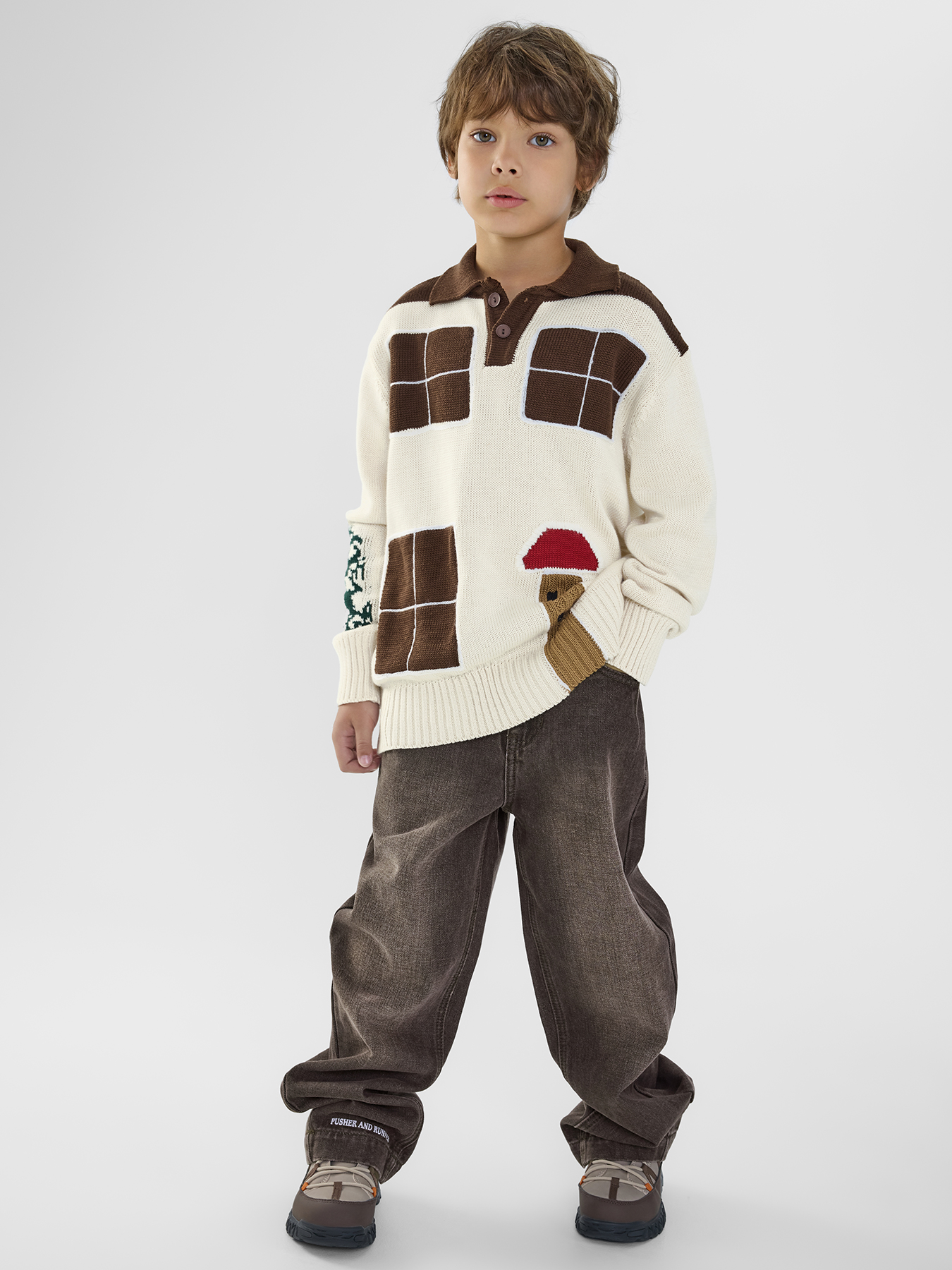 Джемпер детский от Happy Baby — теплая и удобная детская одежда с гармоничным дизайном для мальчиков и девочек. Подходит для повседневной носки в детский садик или под куртку осенью и зимой. Также подходит для праздничных мероприятий, будь то день рождения или новый год. Особенности • Мягкий материал — тактильно приятный для ребенка • Практичность — воротник-поло на пуговицах и манжеты обеспечивают удобство при надевании • Свободный крой — создает комфорт и не сковывает движения ребенка • Дизайн — вышивка в виде домика с милым грибочком, выполненная в базовых цветах, смотрится гармонично и создаст уют в детском образе Уход • Стирка при температуре воды до 30 °C • Не отбеливать • Барабанная сушка запрещена • Сушка в расправленном состоянии • Не гладить • Сухая чистка запрещена Уважаемые покупатели! Оттенок изделия вживую может незначительно отличаться от фотографий на вашем экране