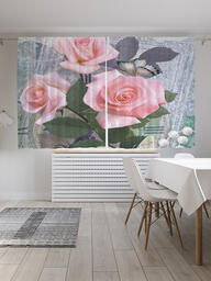 Шторы с фотопечатью "Розы и бисер" из сатена, 145х180 см