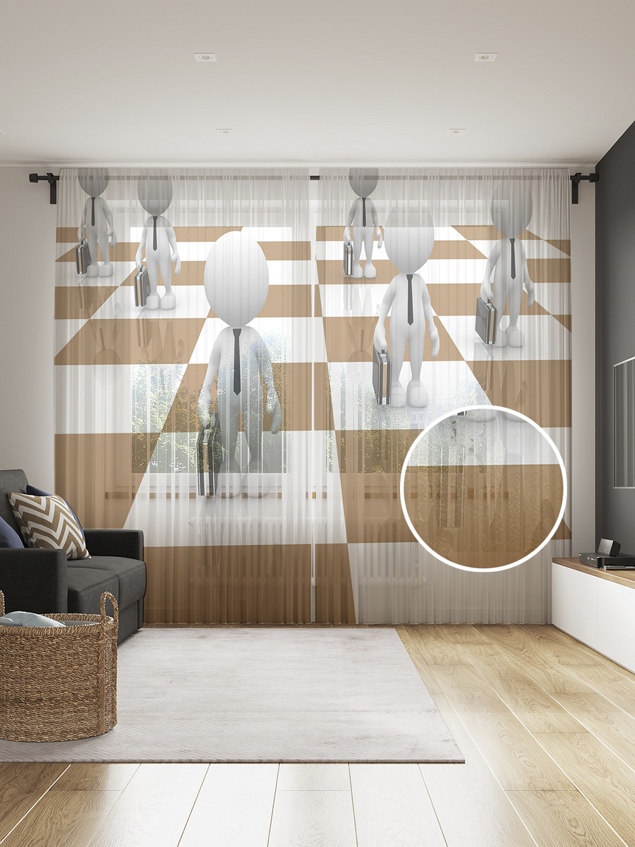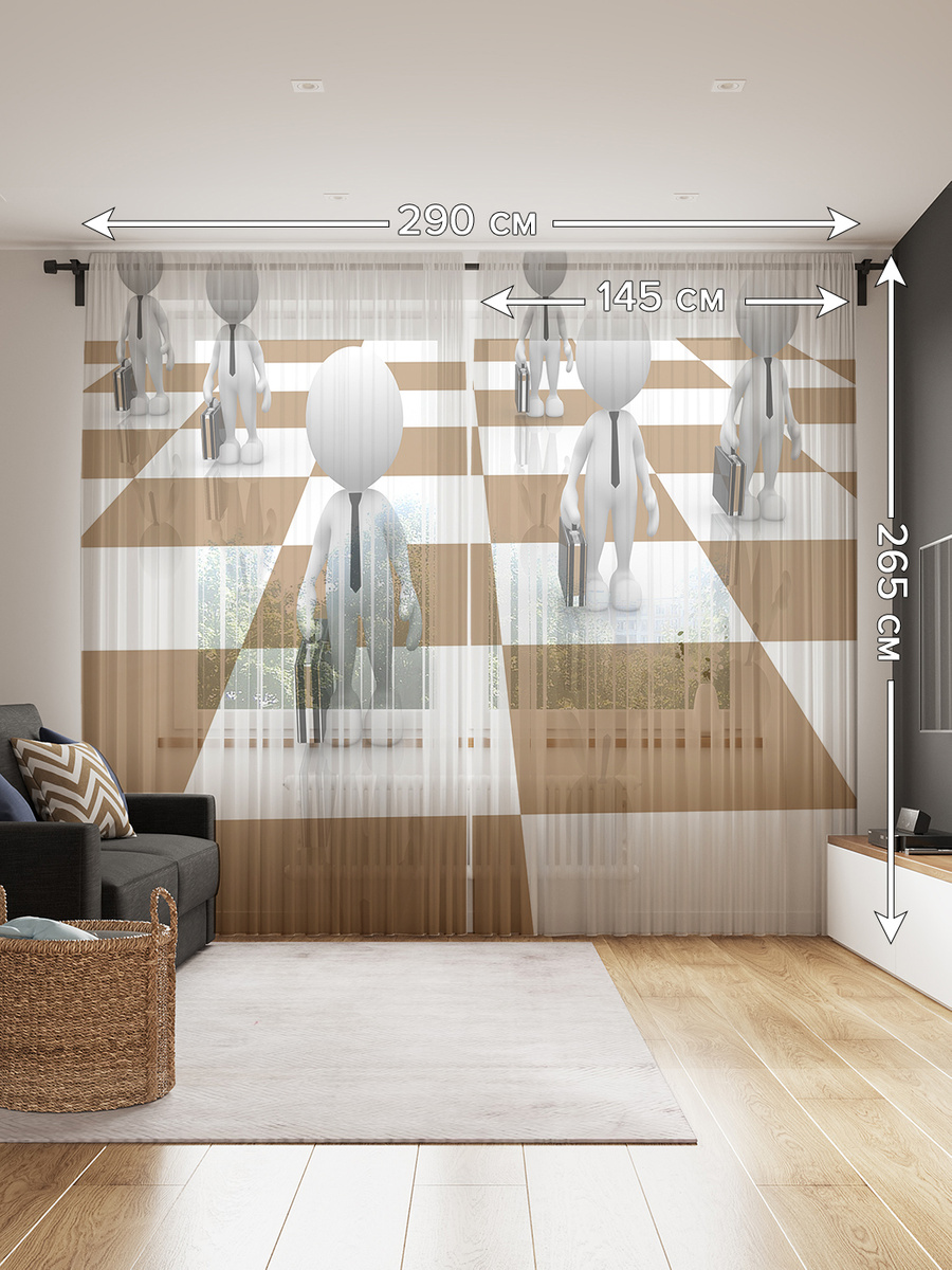 Тюль JoyArty высота 265 см, ширина 290 см, tul_8800_145x265, крепление - Лентакоричневый