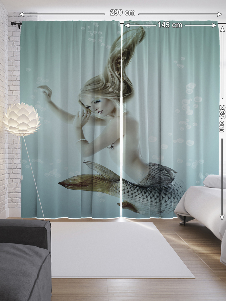Шторы с фотопечатью "Красота русалки" из сатена, 145x265 см