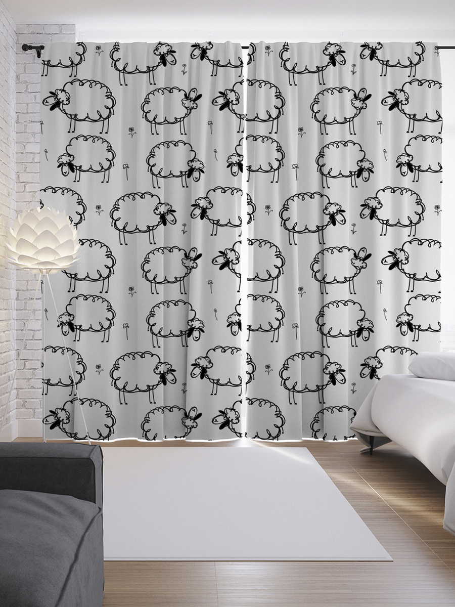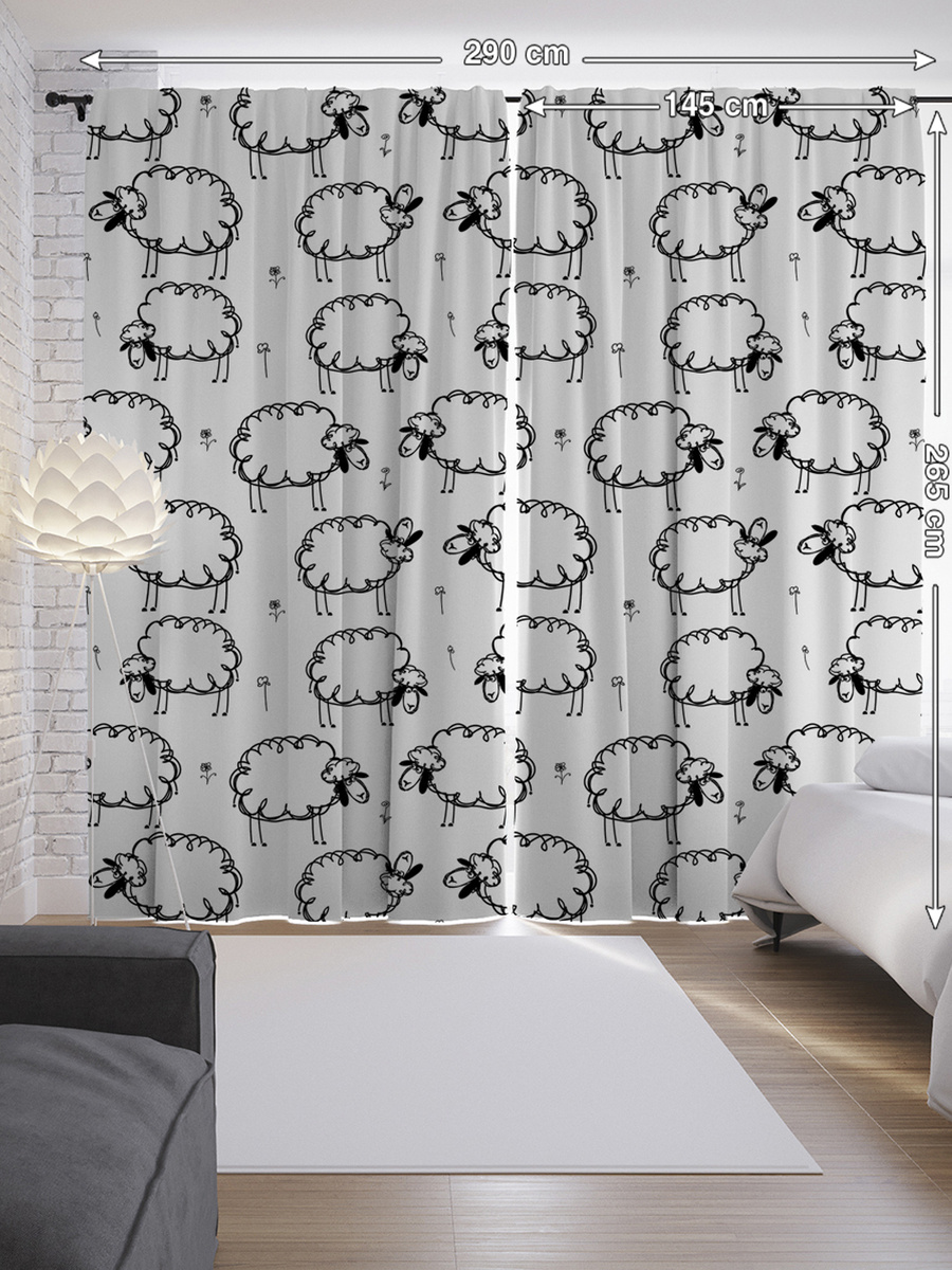 Шторы с фотопечатью "Овечки на пастбище" из сатена, 145x265 см