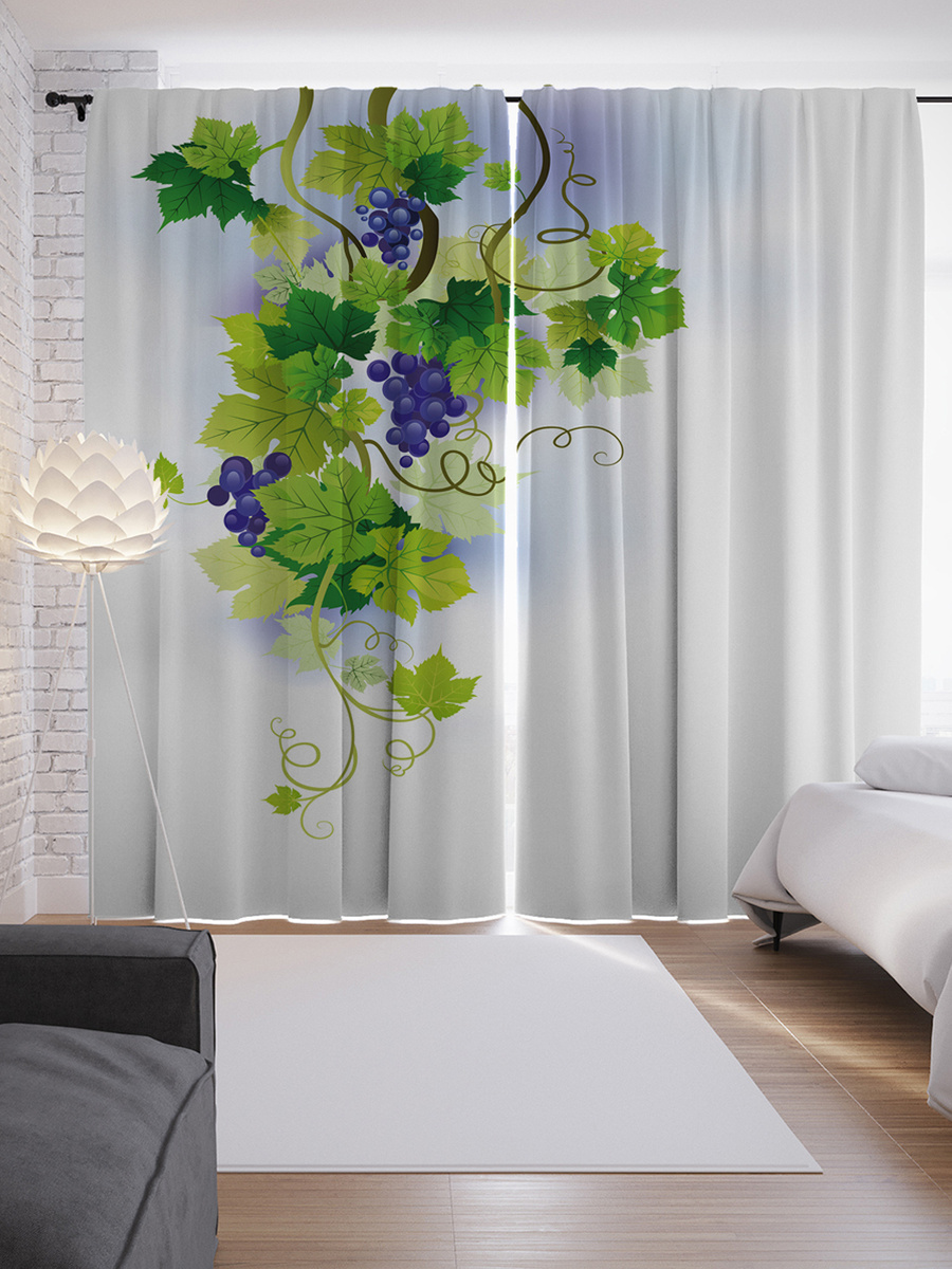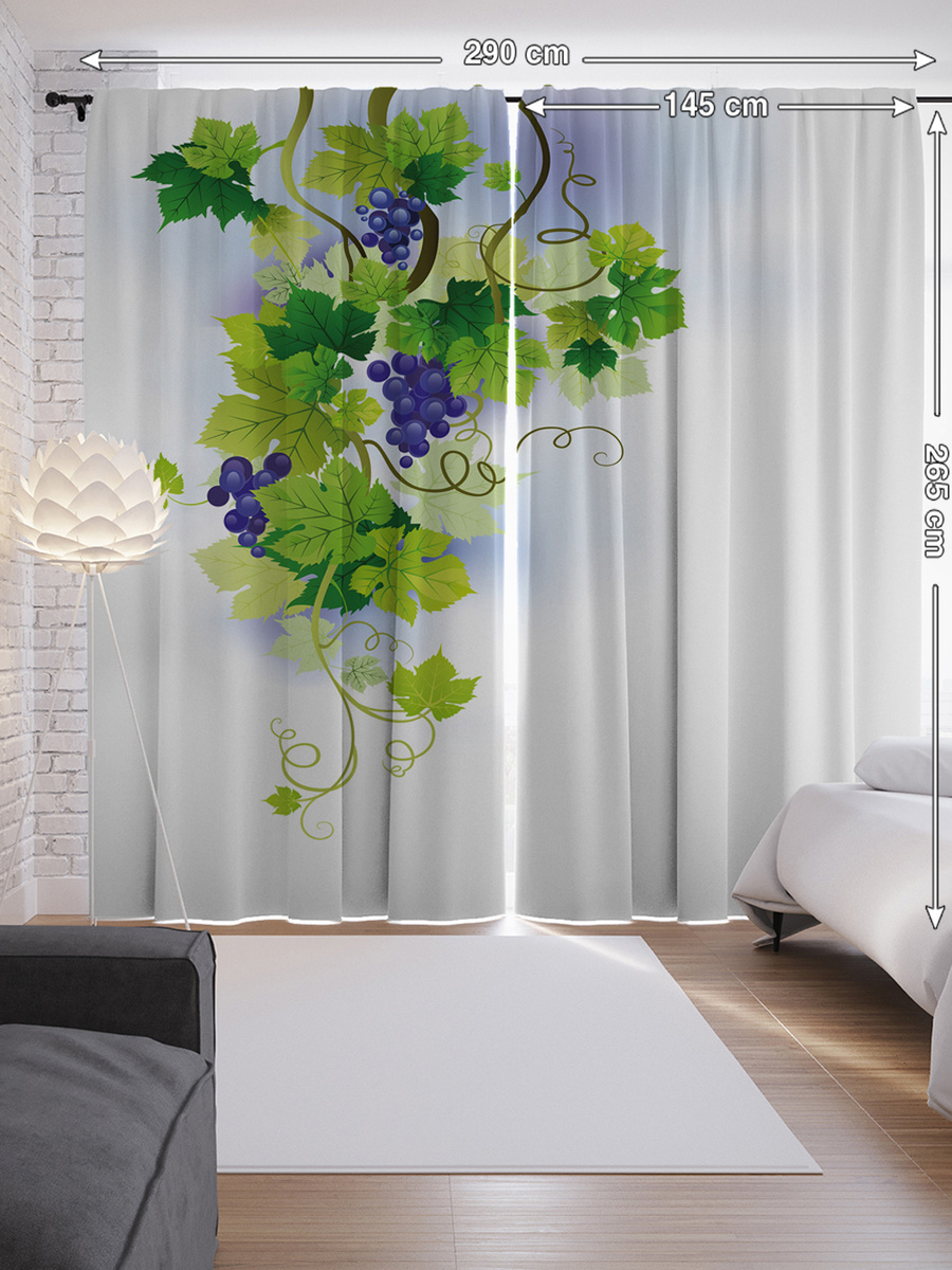 Шторы с фотопечатью "Плоды винограда" из сатена, 290х265 см