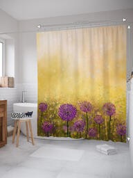 Штора (занавеска) для ванной "Цветные одуванчики" из ткани, 180х200 см с крючками